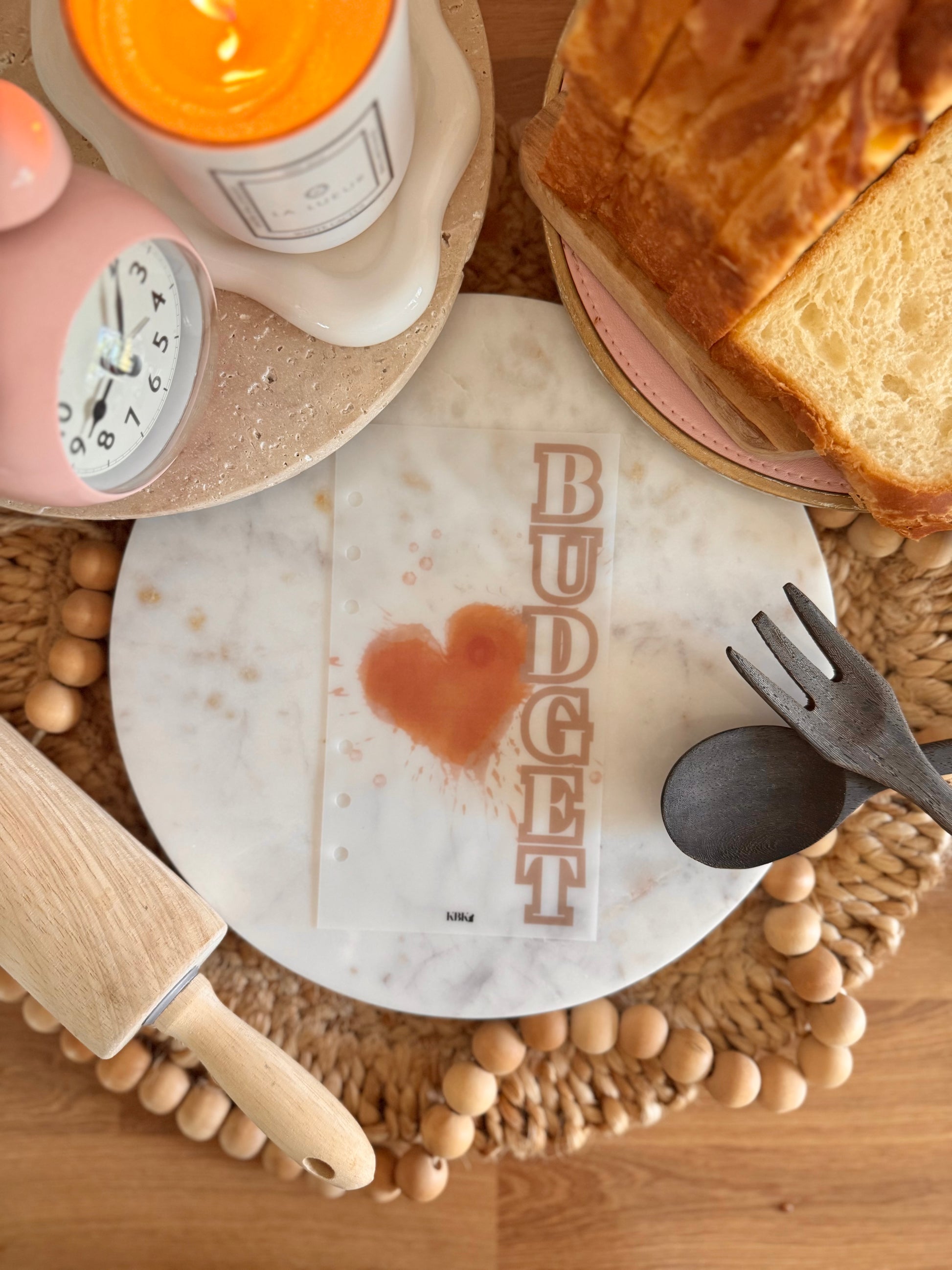 A cozy cup of calm for your finances. The Budget & Brew Dashboard pairs warm café charm with everyday intention — featuring the word “budget” along the side in a soft tan hue, and a coffee-stained heart in the center that looks as if it was left behind by your favorite morning mug.
