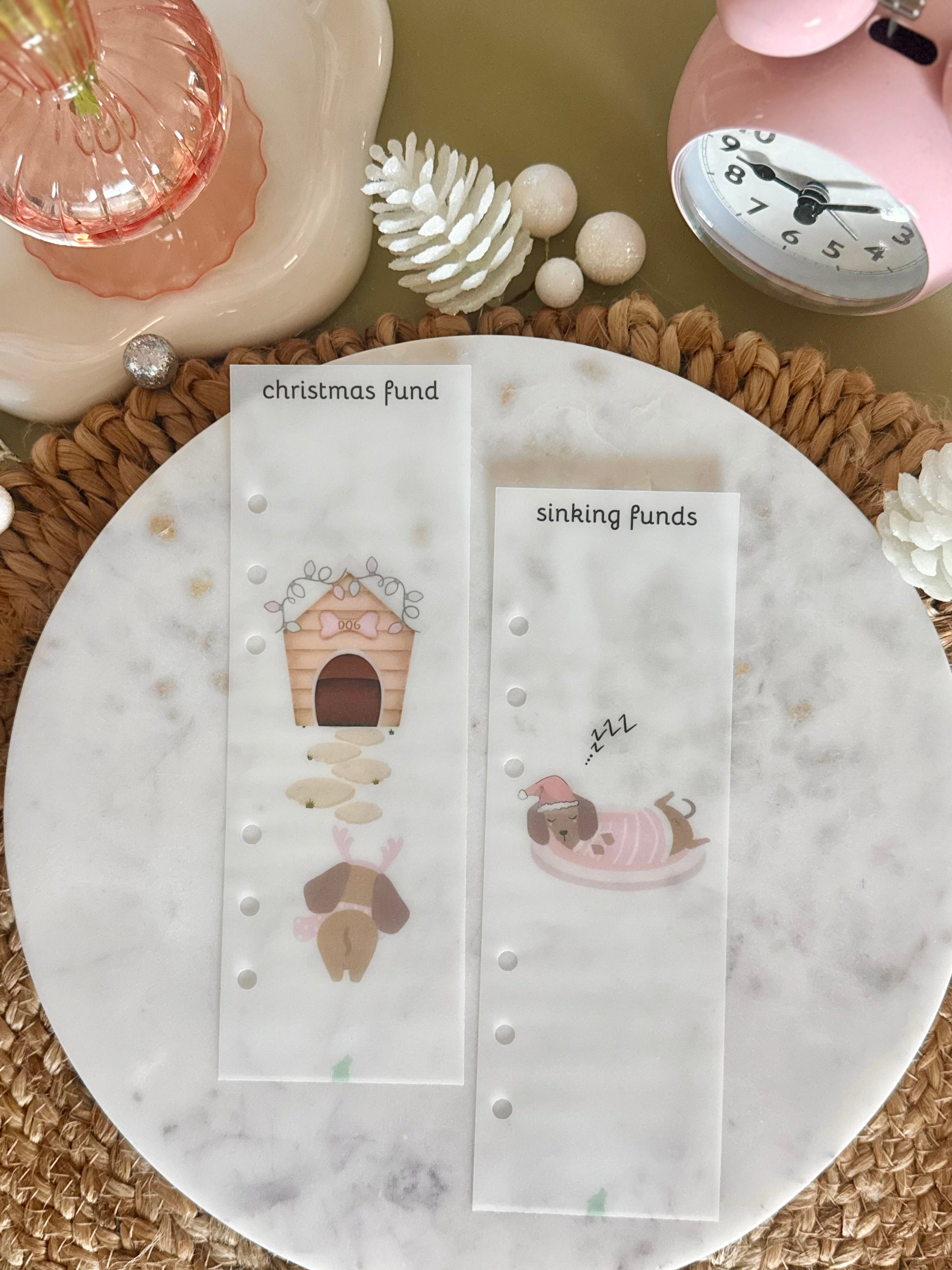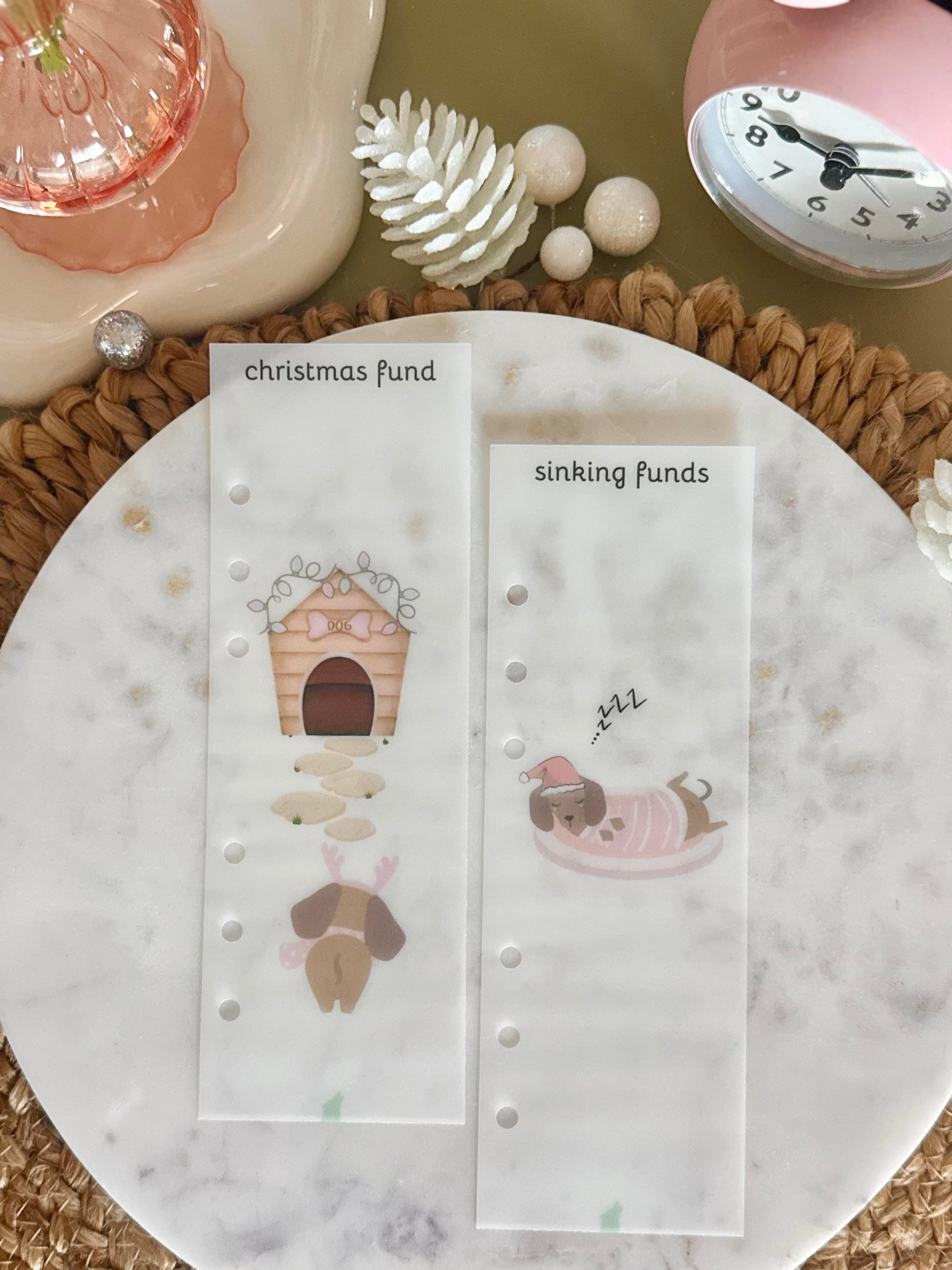 Add a dash of festive charm to your planner or budget binder with our Dachshund Through the Snow Divider Duo! This set includes two A6 dividers, each featuring an adorable dachshund in its pink Christmas gear. Perfect for organizing your sections with personality and holiday cheer.