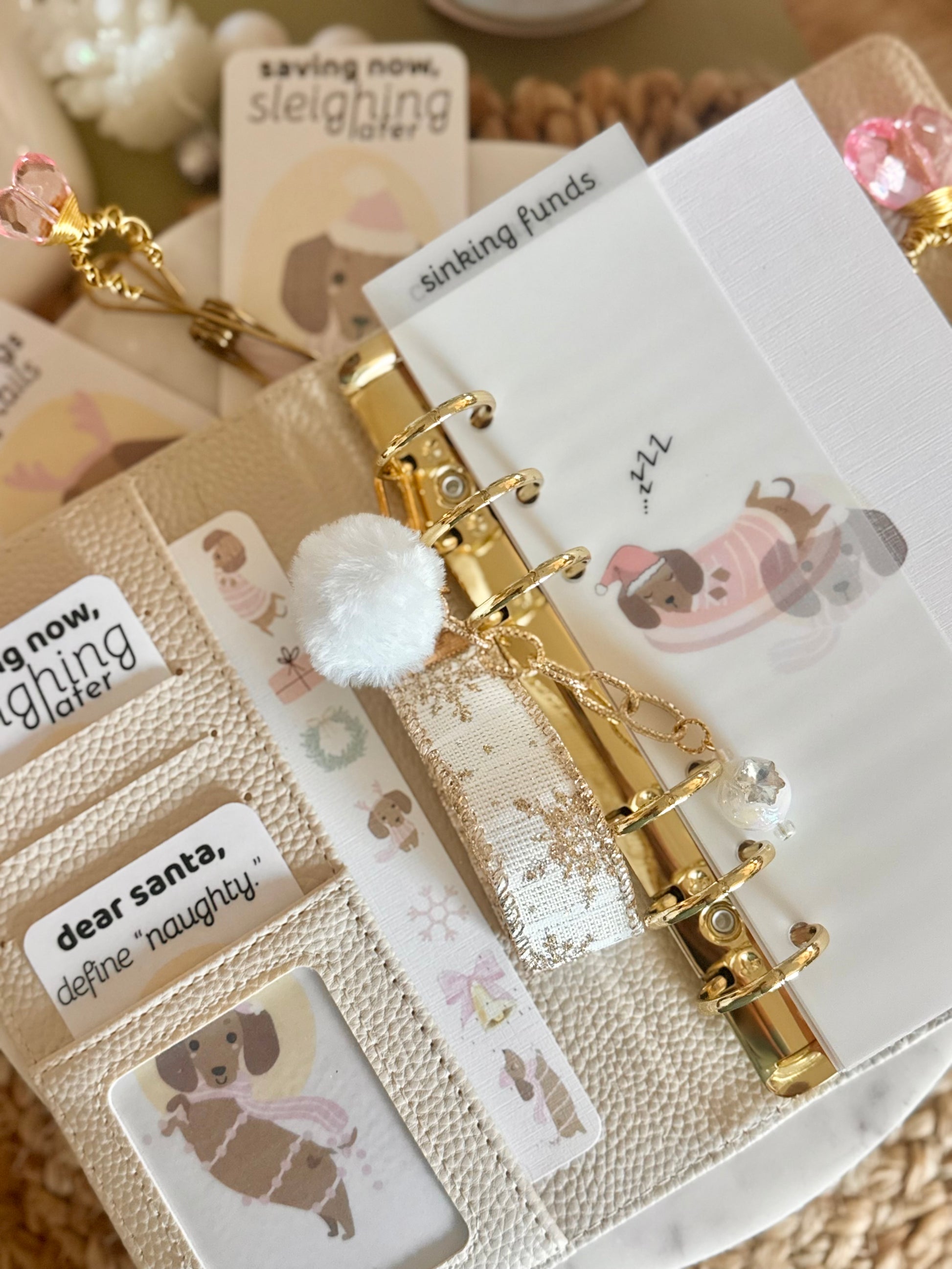 Give your planner or budget binder a festive flip with our Dachshund Through the Snow duo dashboard set! Designed for versatility and charm, this double-sided dashboard features: