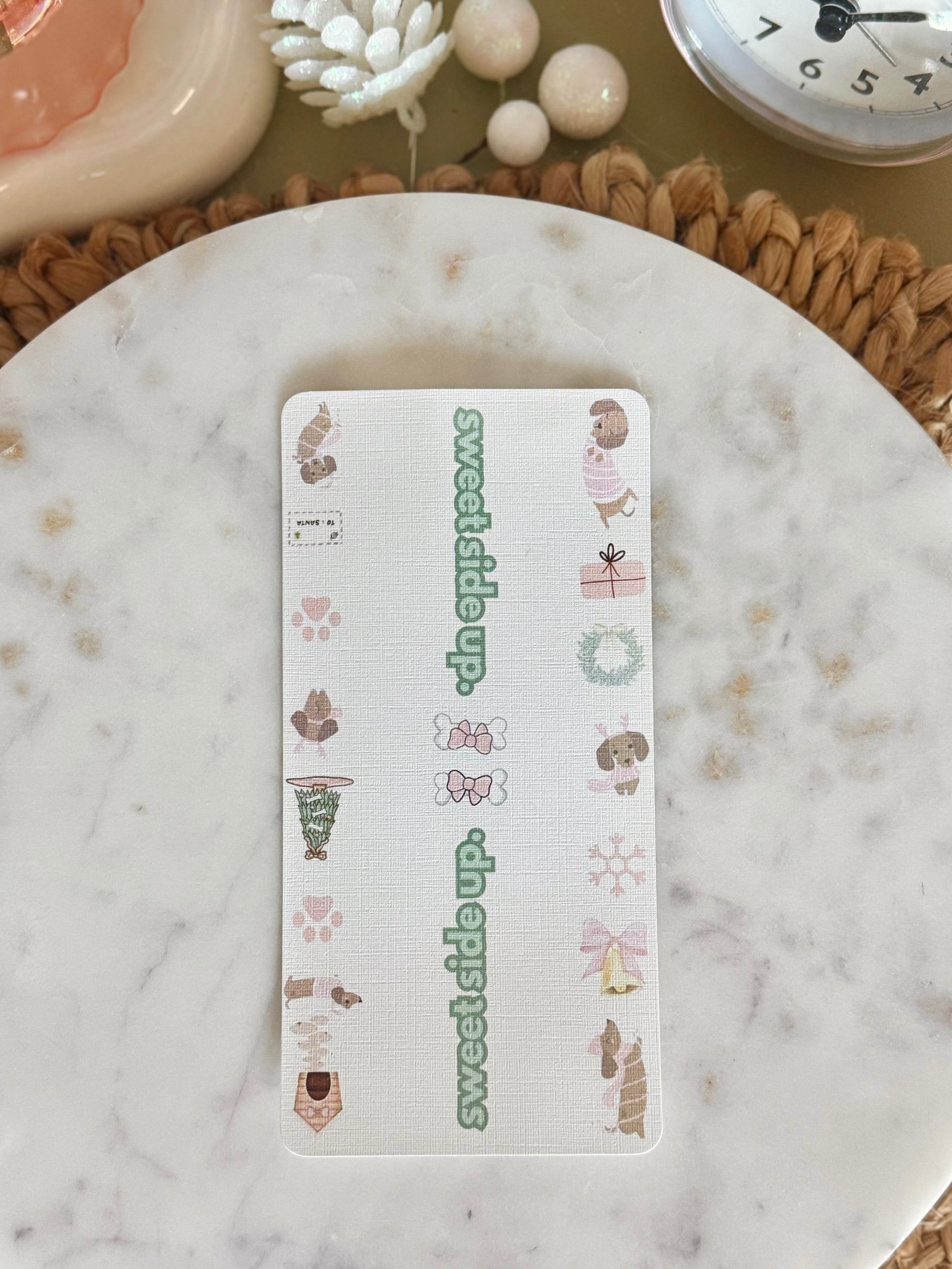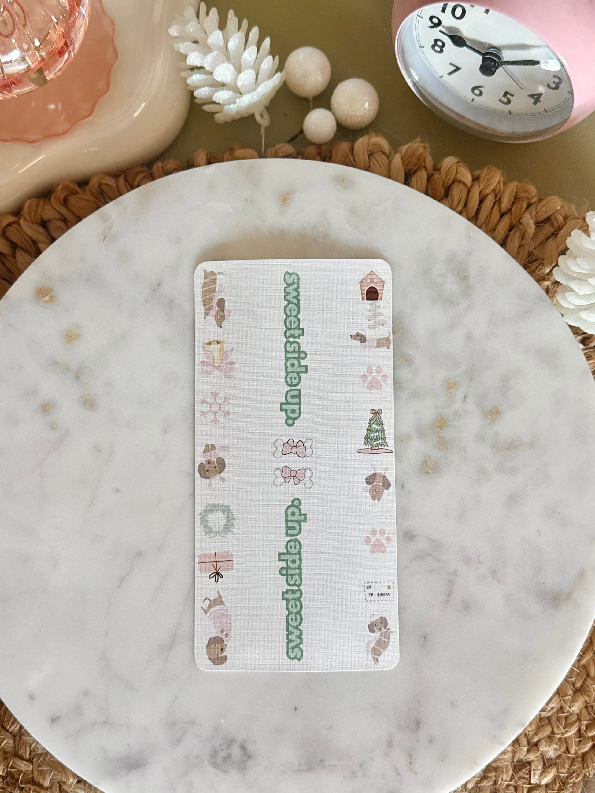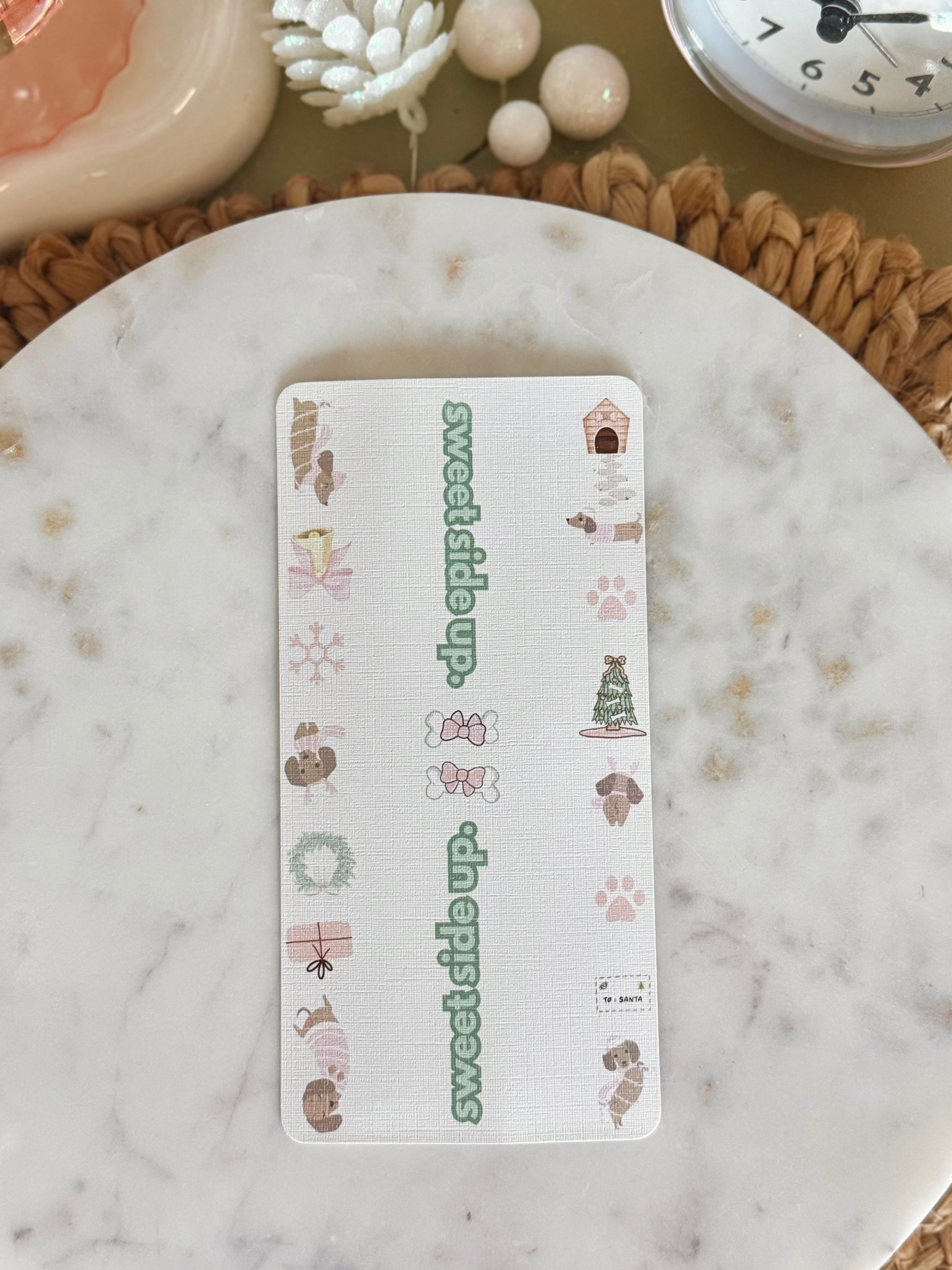 Add a playful winter peek to your planner or budget binder with the Pocket Peeker from the Dachshund Through the Snow collection! Designed to tuck into your larger pockets and peek out the side, it brings instant decorative charm โ and two adorable looks in one.