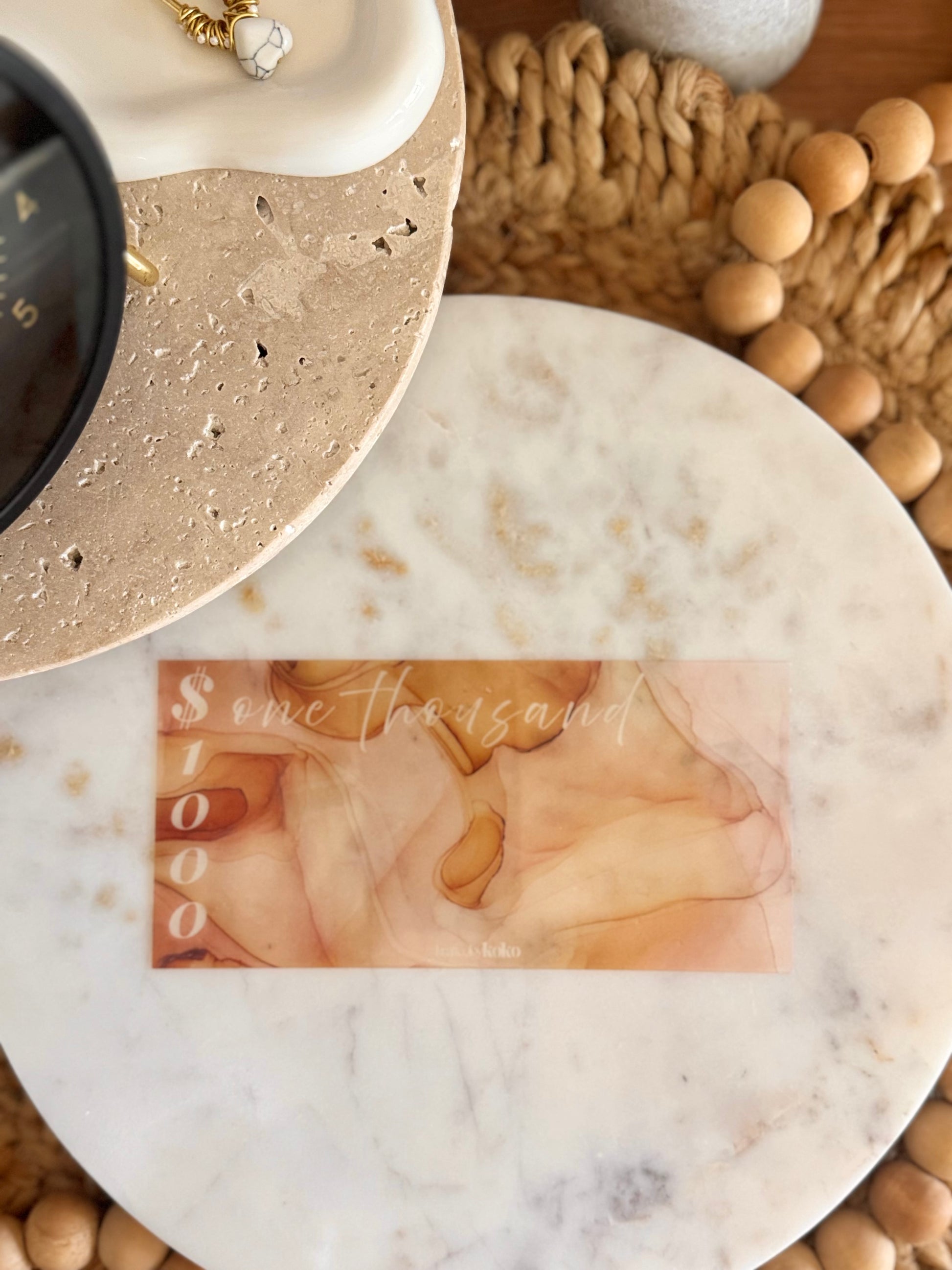 Crafted to blend artistry with intention, this placeholder catches the light as you move, creating a soft golden reflection that pairs effortlessly with the Stone & Script dashboards and envelopes. Its transparent finish makes it perfect for layering, allowing your setup’s textures and tones to softly shine through.