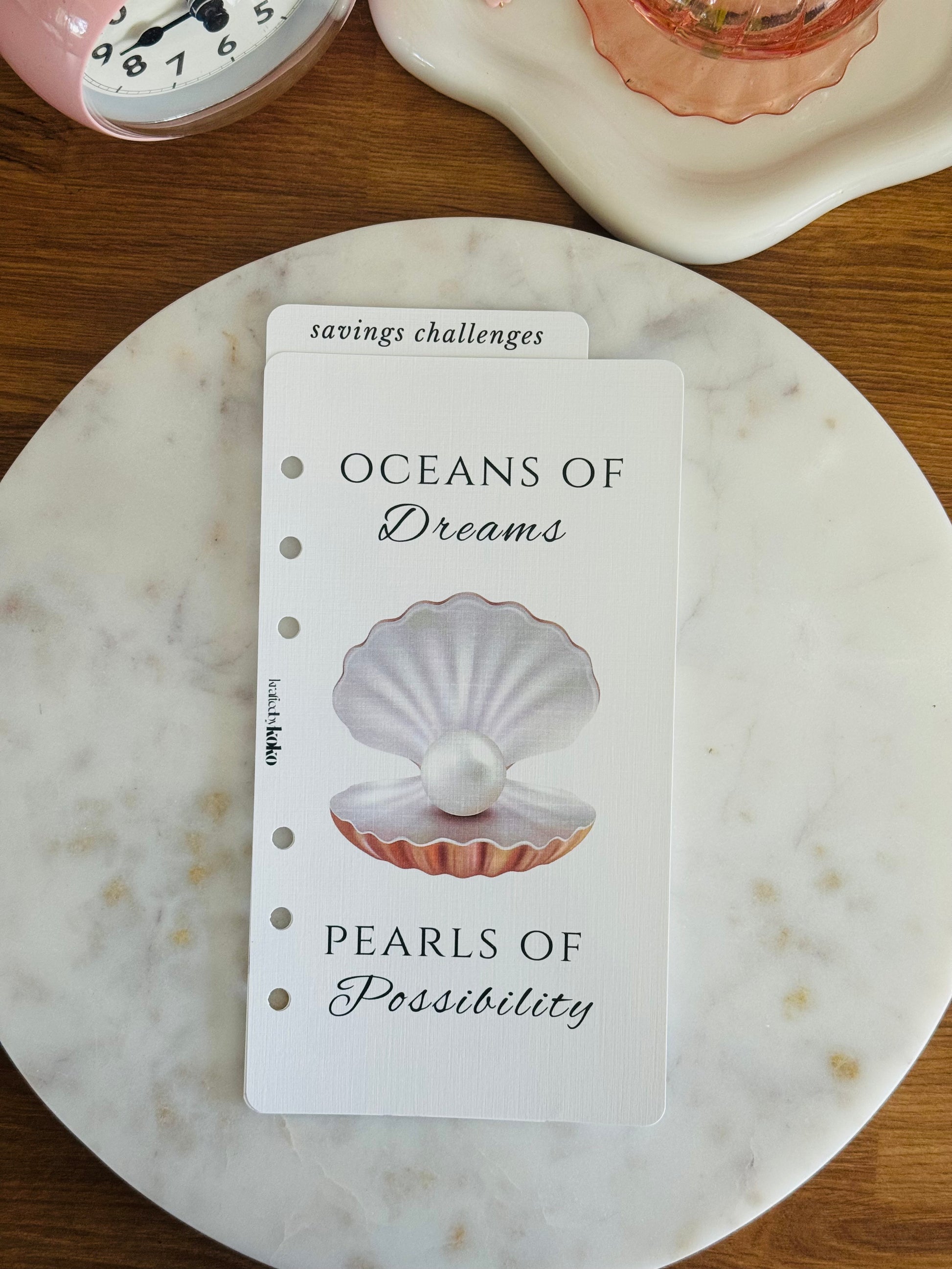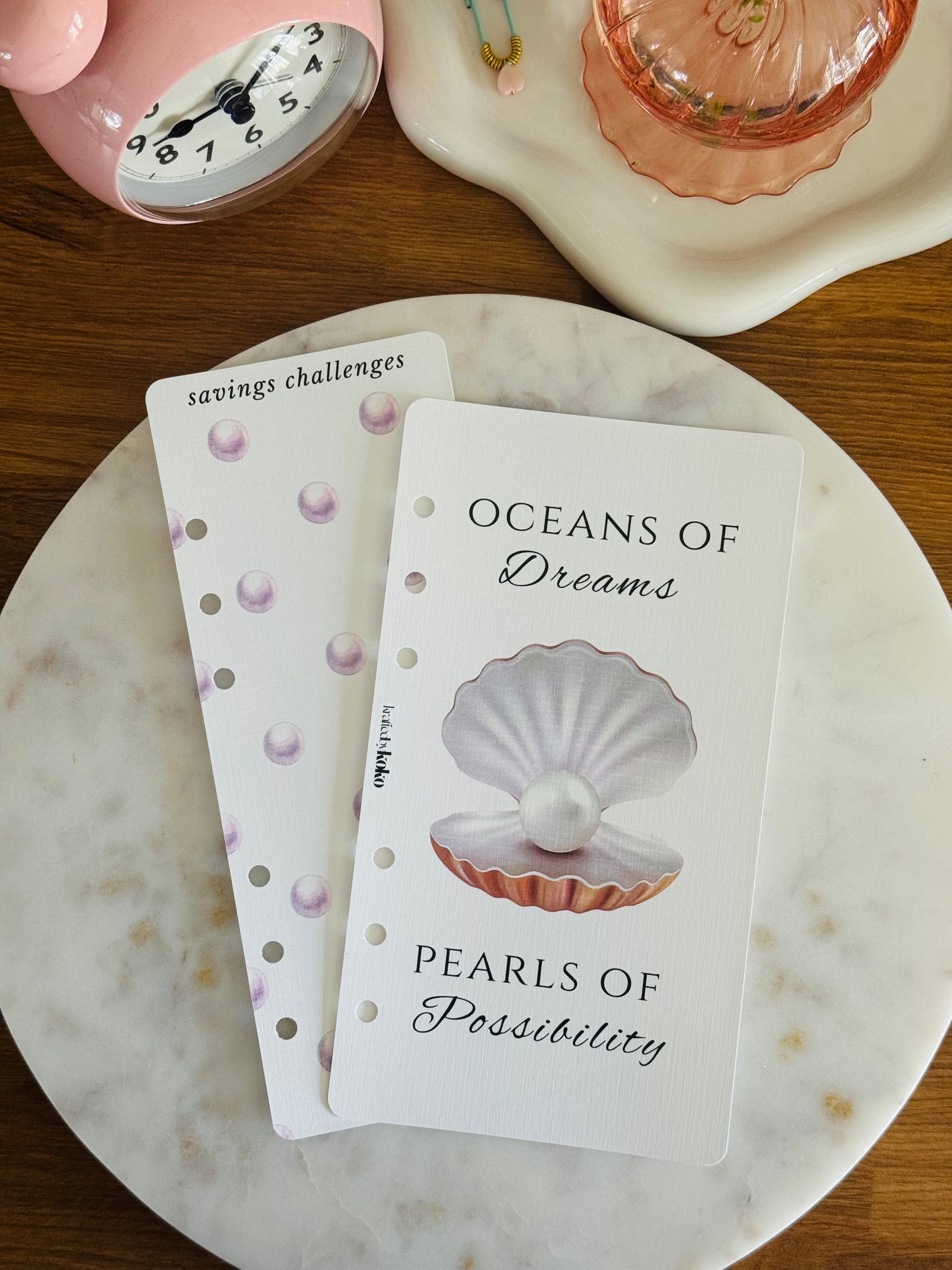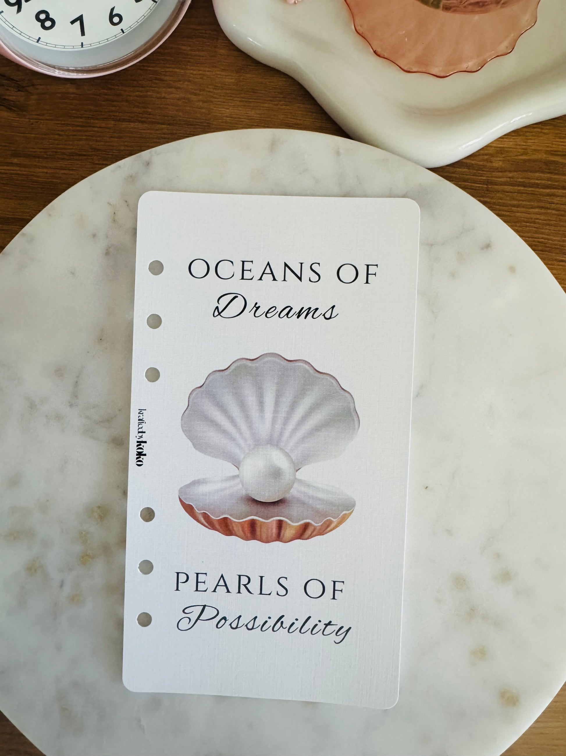 This duo captures the serene elegance and natural luxury of the sea, with soft pearlescent hues and intricate detailing that bring a subtle sparkle to your planner or binder. Perfect for those who adore classic sophistication paired with a touch of whimsical magic.