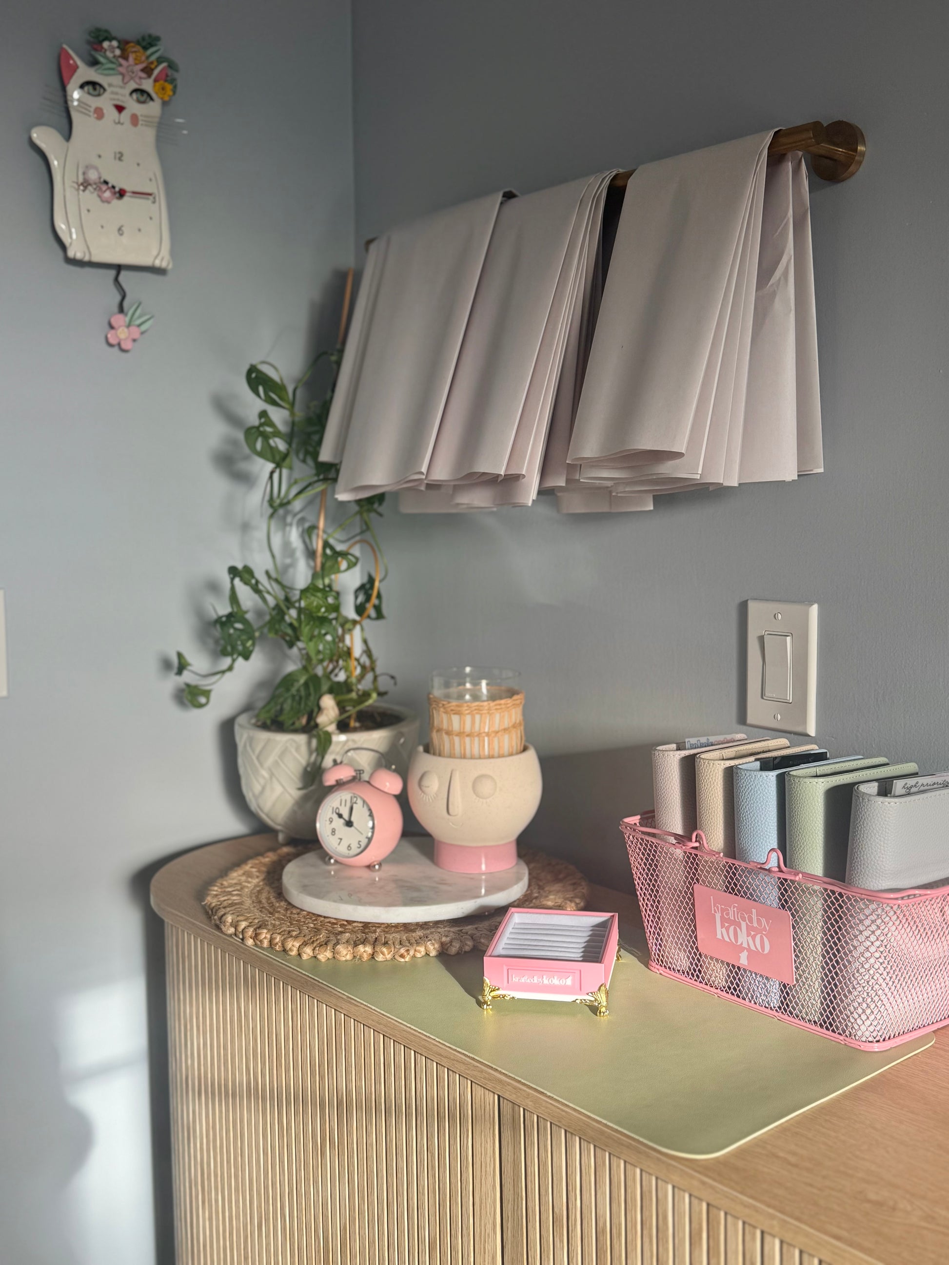 Designed with budgeters and planners in mind, Koko’s Cutie Kart is perfectly sized to comfortably fit 5–6 budget binders, with extra room for notepads, pens, envelopes, planners, and other planning supplies. Whether you’re cash stuffing at your desk, filming setup content, or organizing your space, this basket keeps everything tidy and within reach.
