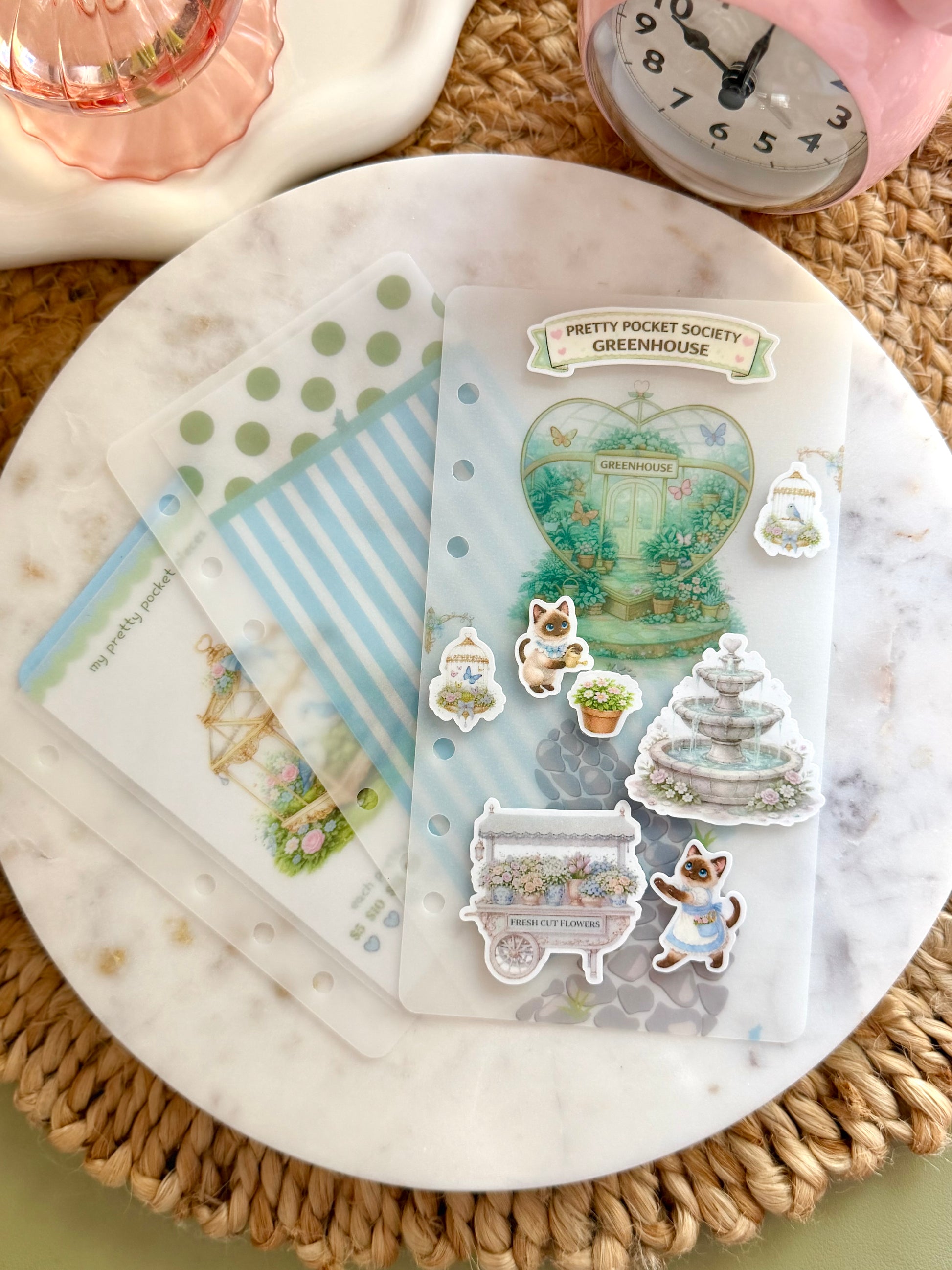 Inspired by a royal garden scene with subtle flowery charm, this set features little Siamese cats tending to their greenhouse, managing a beautiful fountain, and arranging blooms from their fresh-cut flower cart. Each pocket piece represents real money you’ve set aside — so every step feels elegant, rewarding, and easy to track.