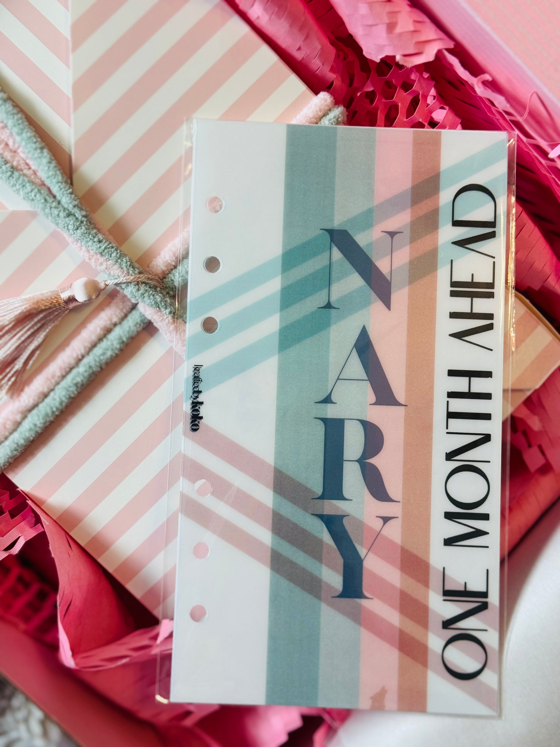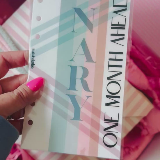 Elevate your monthly savings binder with the Paper Disko Duo Dashboard! This unique duo includes a creamy white cardstock dashboard personalized with your name and a holographic transparent glossy paper dashboard with the fun phrase "One Month Ahead" displayed in both styles. Get ready to disko your way to financial success!