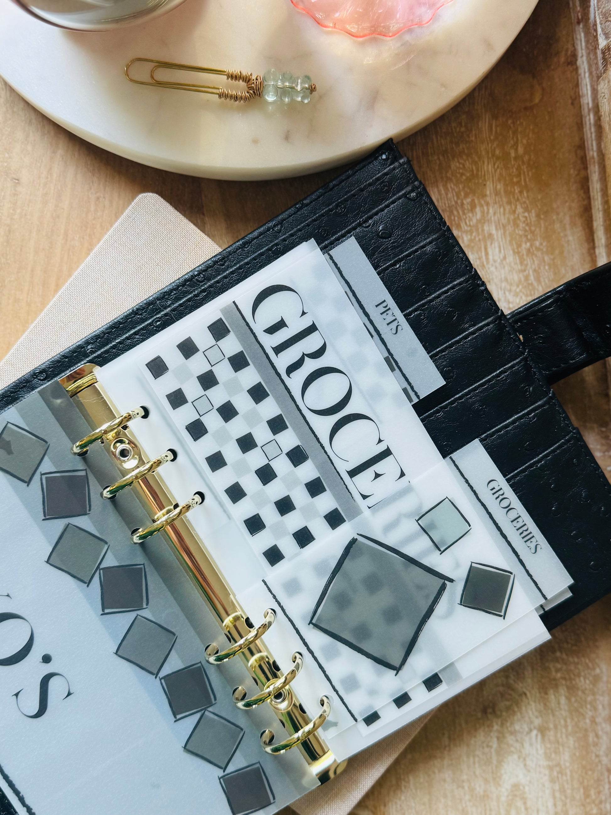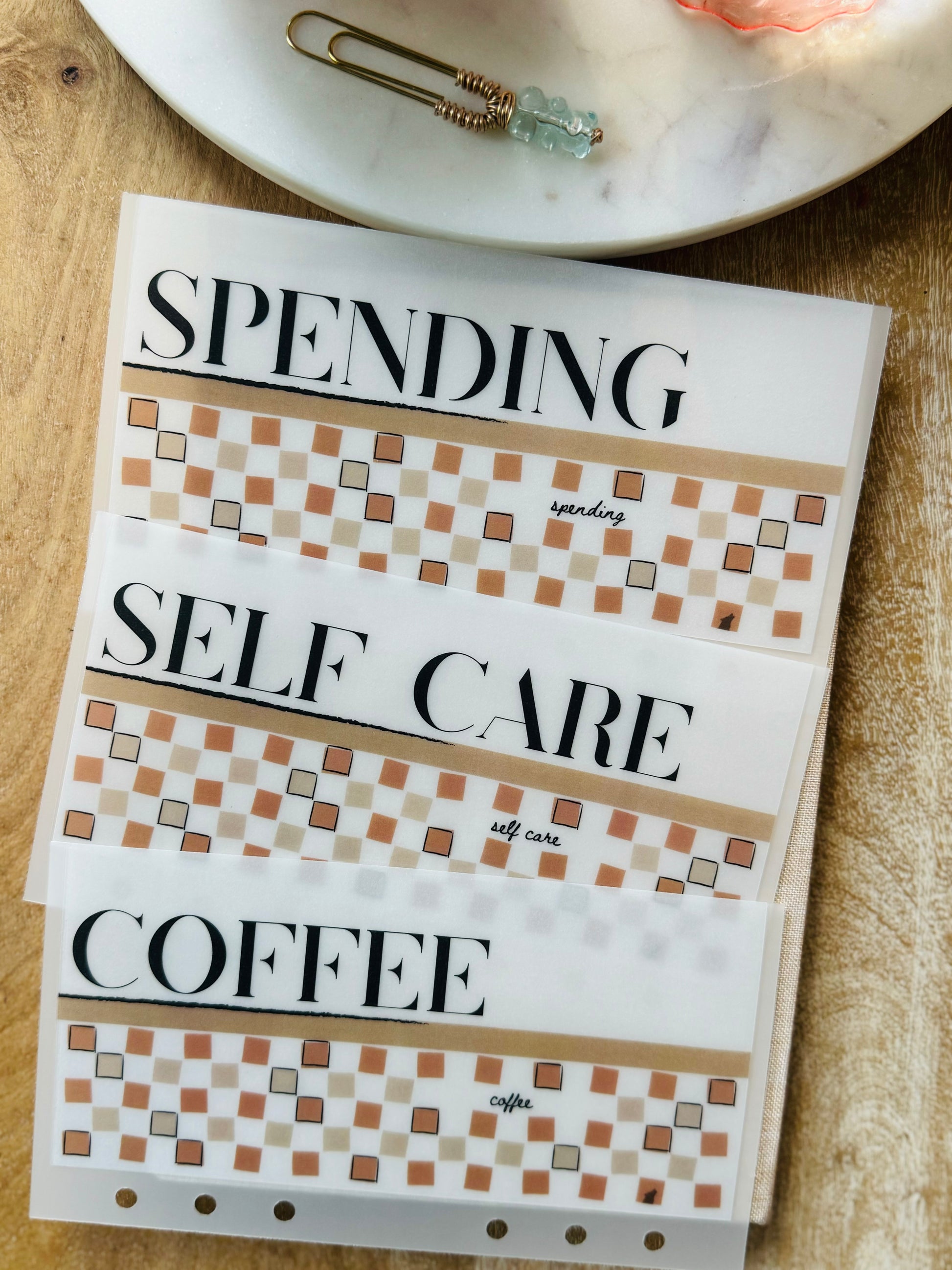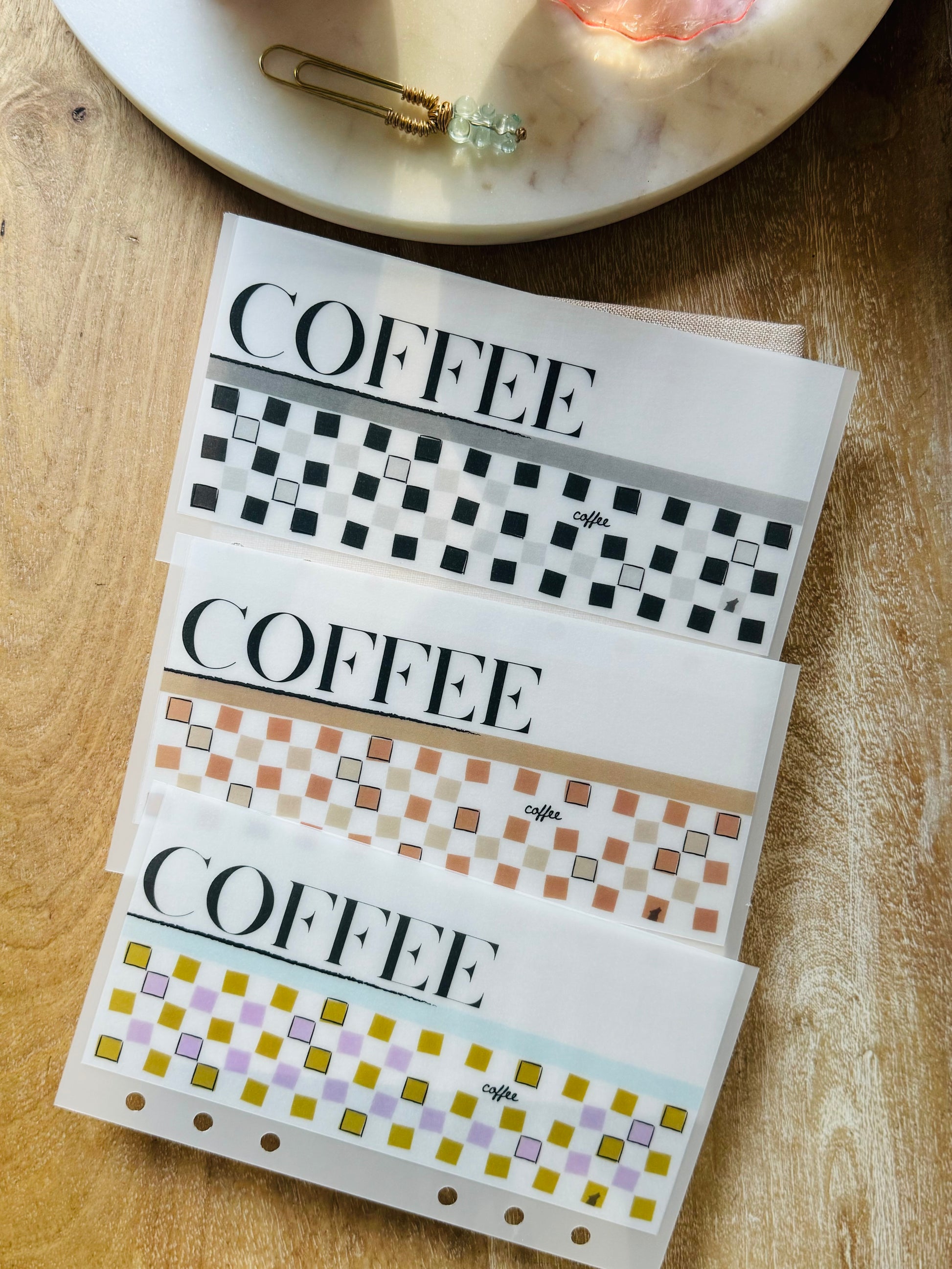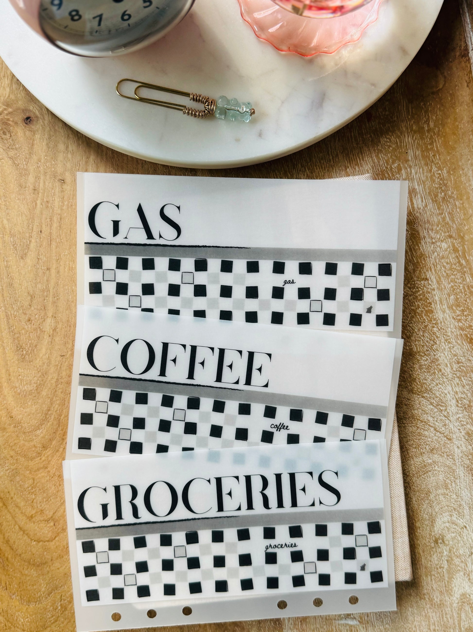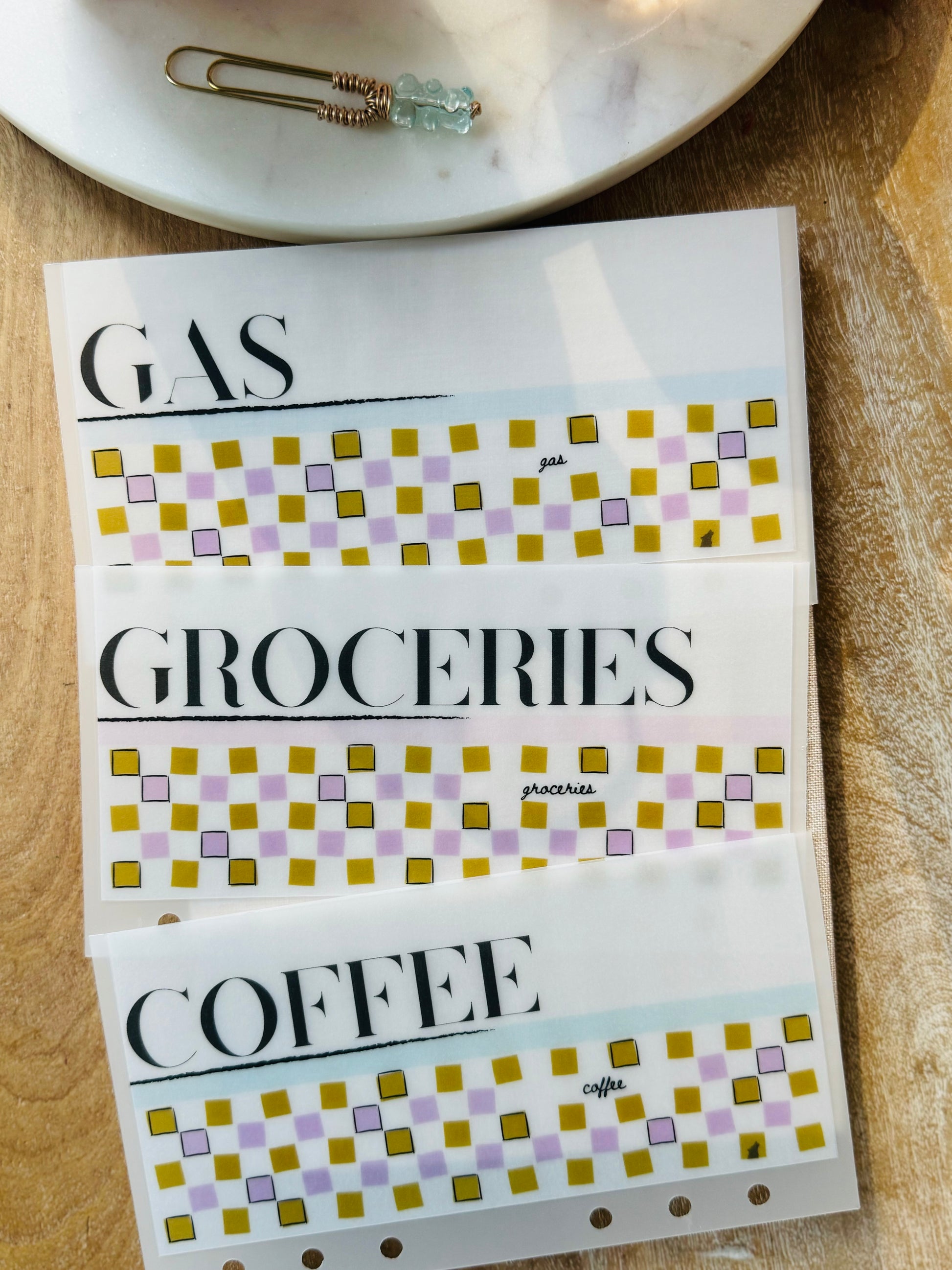 Have a blast filling up your cash envelopes with the lively Perky Patchwork checkered print. Pick from 3 vibrant color options! Text is boldly displayed on top and in delicate cursive within the design. Konstructed with 5 mil matte laminate on see-through vellum.
