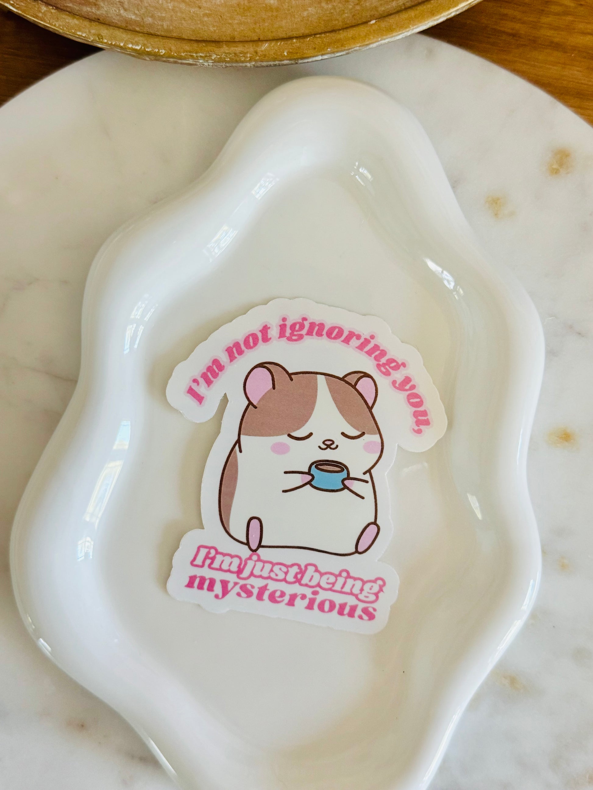 Meet Sip & Shade, the cheeky little mouse who’s mastering the art of mystery—one delicate sip of tea at a time. With a twinkle of sass and a dash of intrigue, this transparent holographic, waterproof sticker perfectly captures that vibe of “I’m not ignoring you, I’m just being mysterious.” Stick it on your laptop, journal, or water bottle to add a sprinkle of playful secrecy wherever you go!