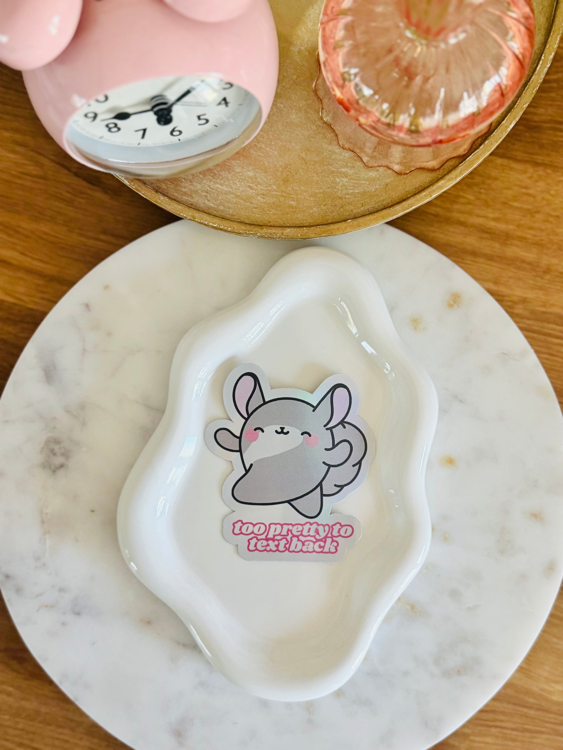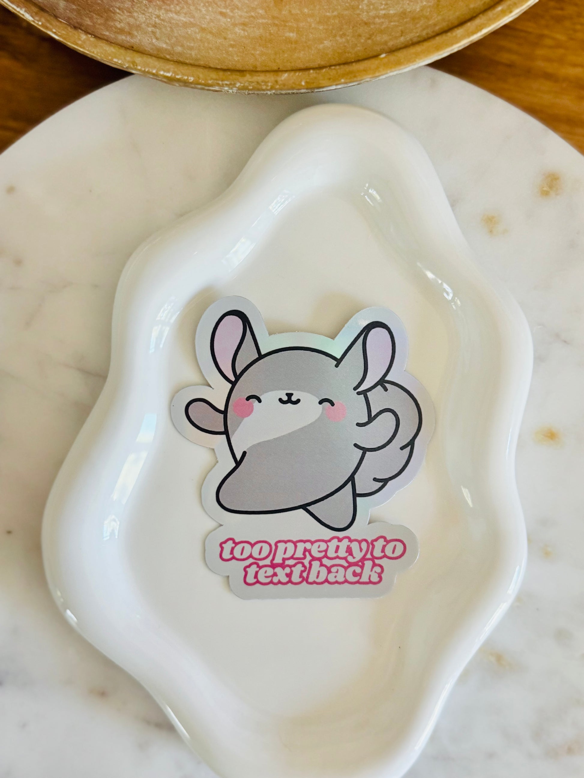Say hello to Skip & Slay, the effortlessly adorable little critter who’s just too pretty to text back—so they skip away with style and sass! This waterproof, solid holographic sticker captures all the confident vibes of someone who knows their worth and isn’t afraid to show it. Perfect for your planner, laptop, or water bottle, it’s a playful reminder to slay your own way, one skip at a time.