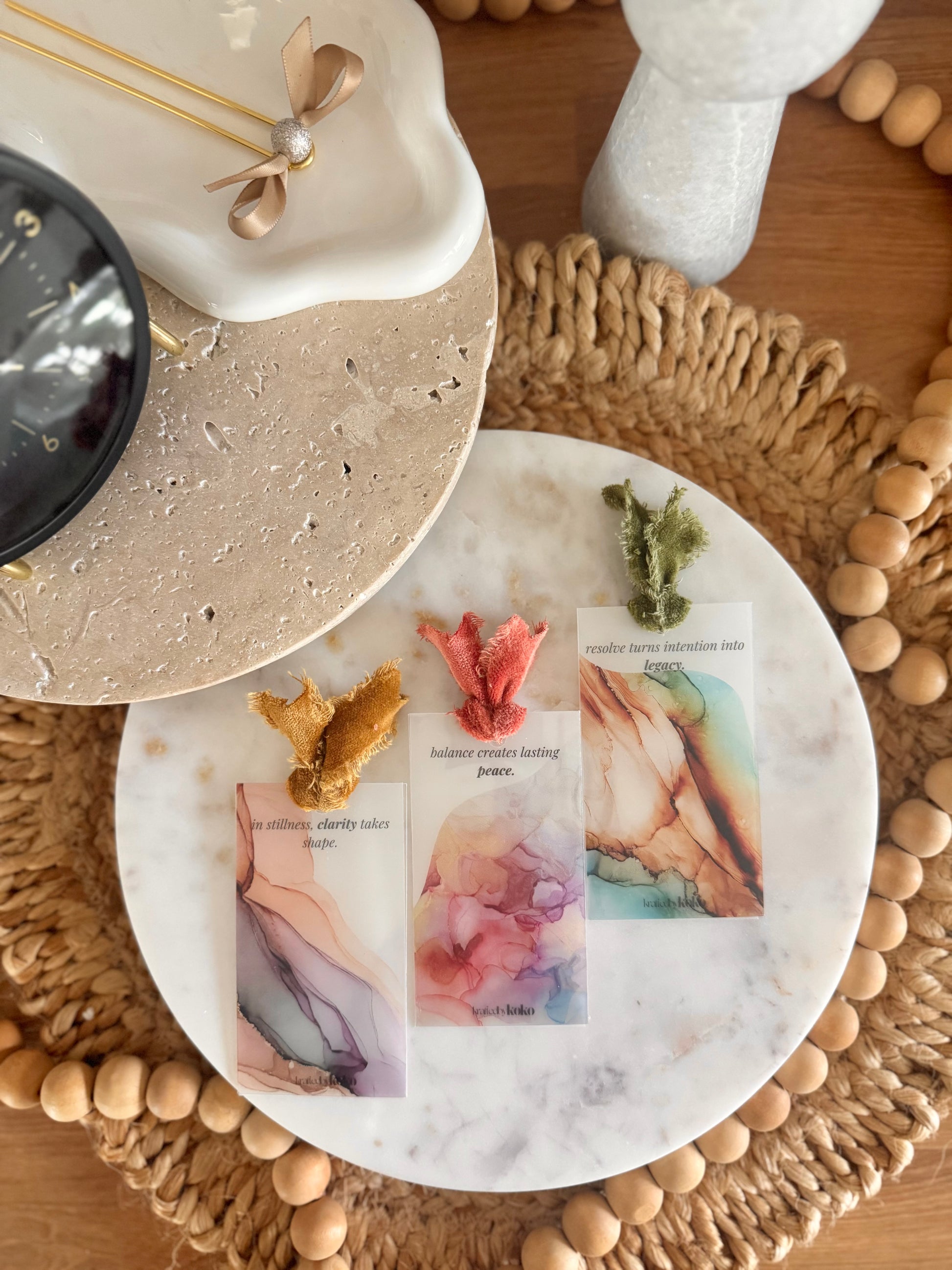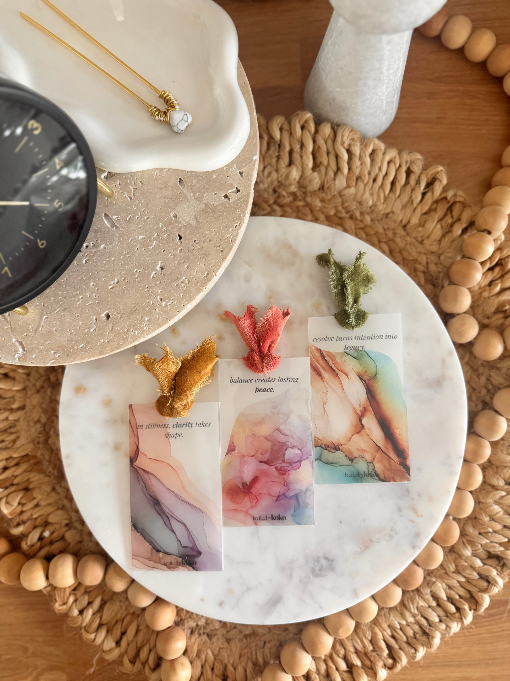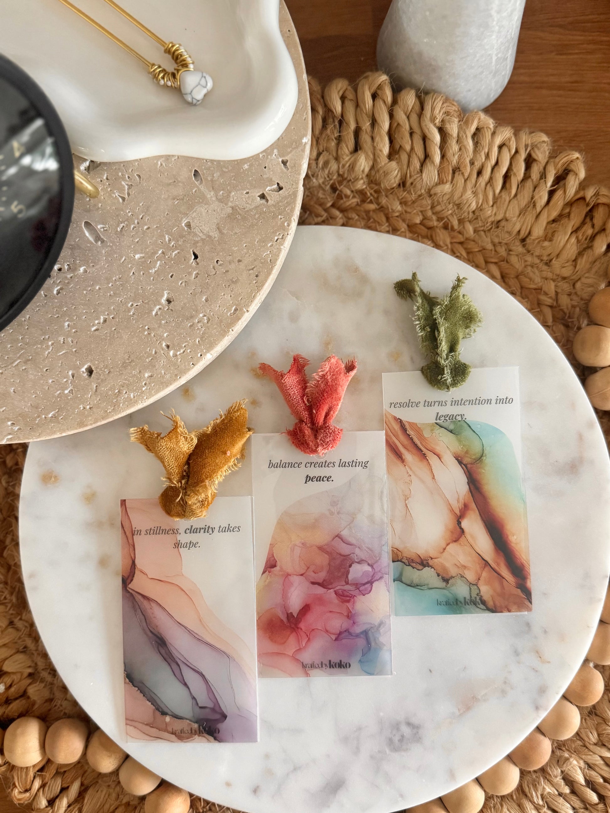 Every pair of layers is hand-tied with a piece of velvet frayed ribbon, adding a touch of warmth and texture that feels both luxe and organic. Designed to complement your fall setups, these cards make the perfect accent for your planner, wallet, or dashboard.