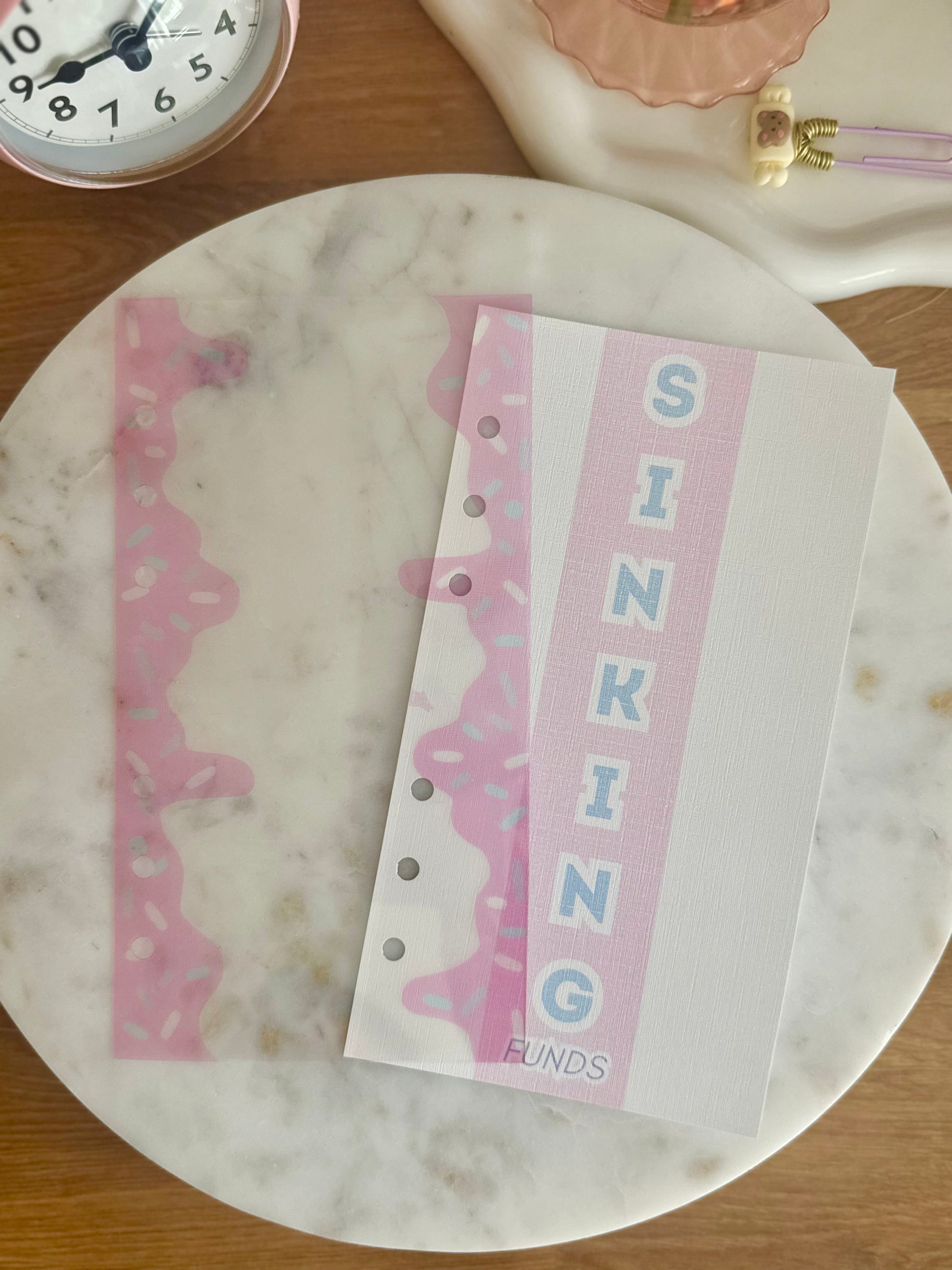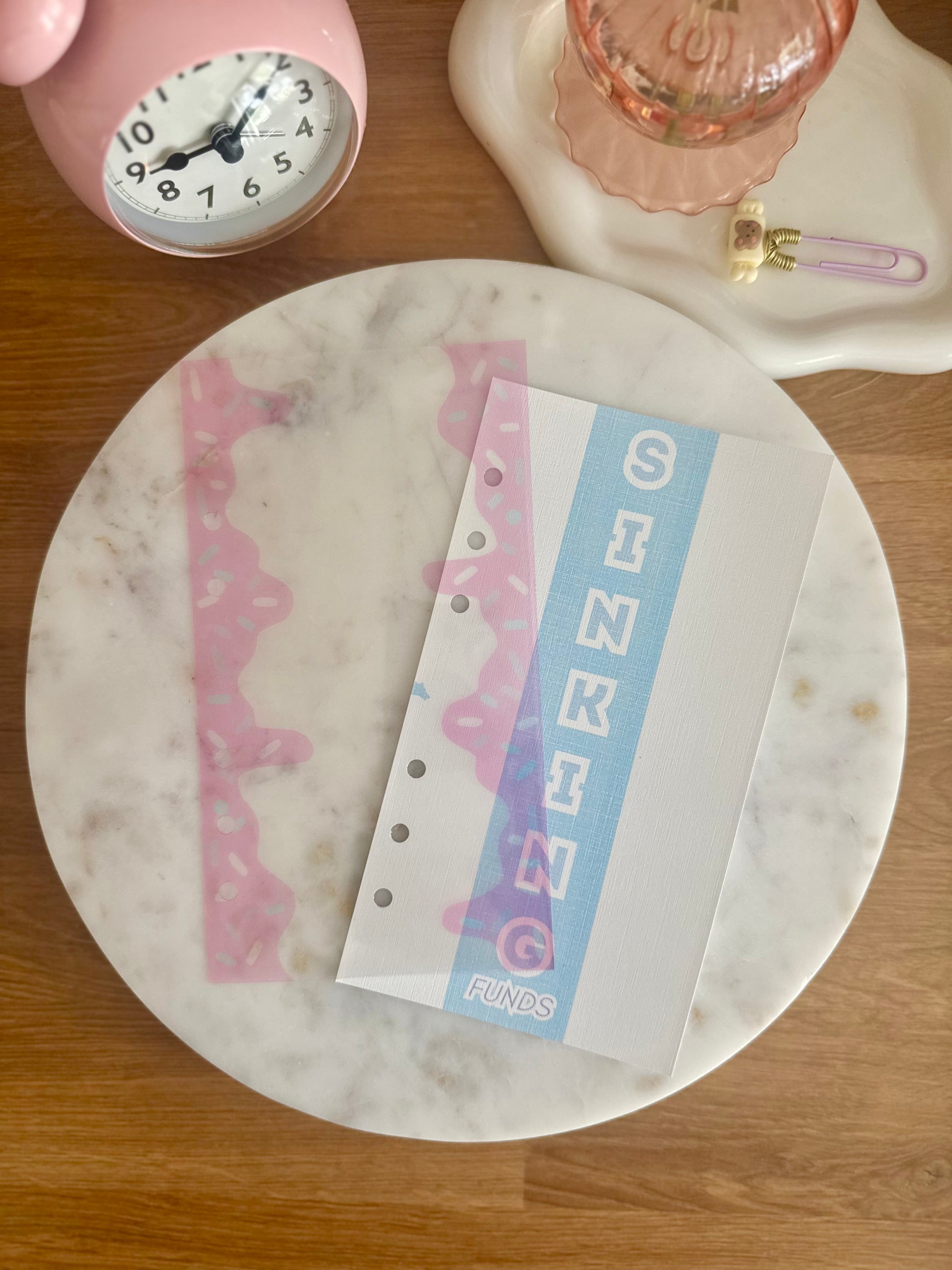 Add a sprinkle of sweetness to your setup with the Frosted Frame Duo Dashboard! Designed with playful icing and colorful sprinkles along the edges, this dashboard gives your titles a fun spotlight—your main title is displayed vertically in the center, with a secondary title nestled neatly at the bottom. The top layer is made with glossy transparent paper and the back dashboard is made with linen cardstock. This dashboard makes every page feel extra sweet. ✨