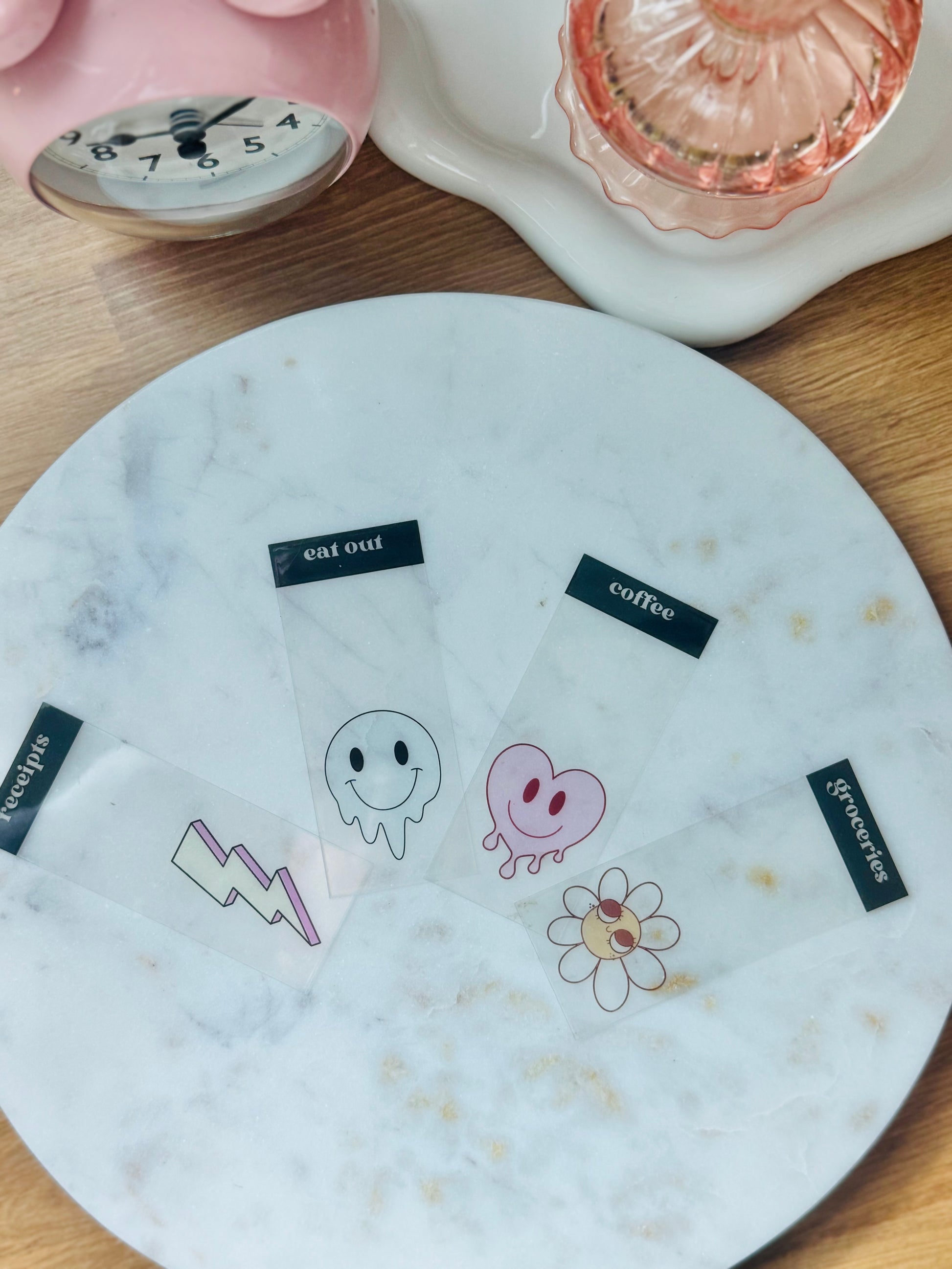 Transform any envelope into a stylish tabbed organizer with Sunshine Paper Klub Fitted Tabs! Designed to fit perfectly inside your envelope, these retro-inspired tabs add a fun and functional touch—making it easy to label, sort, and find what you need in a flash. Add a splash of sunshine vibes to your organization game and keep everything neat with effortless style.