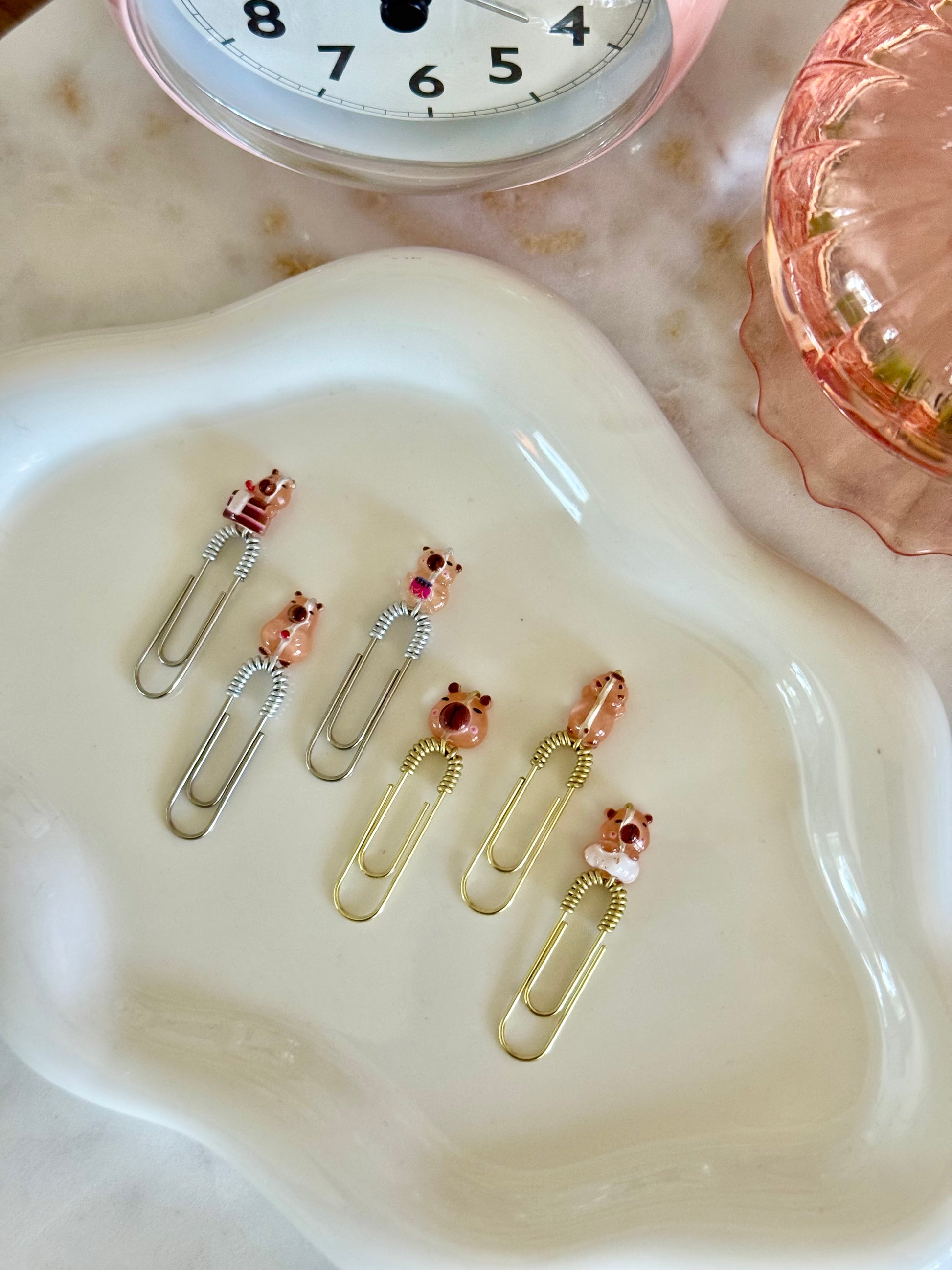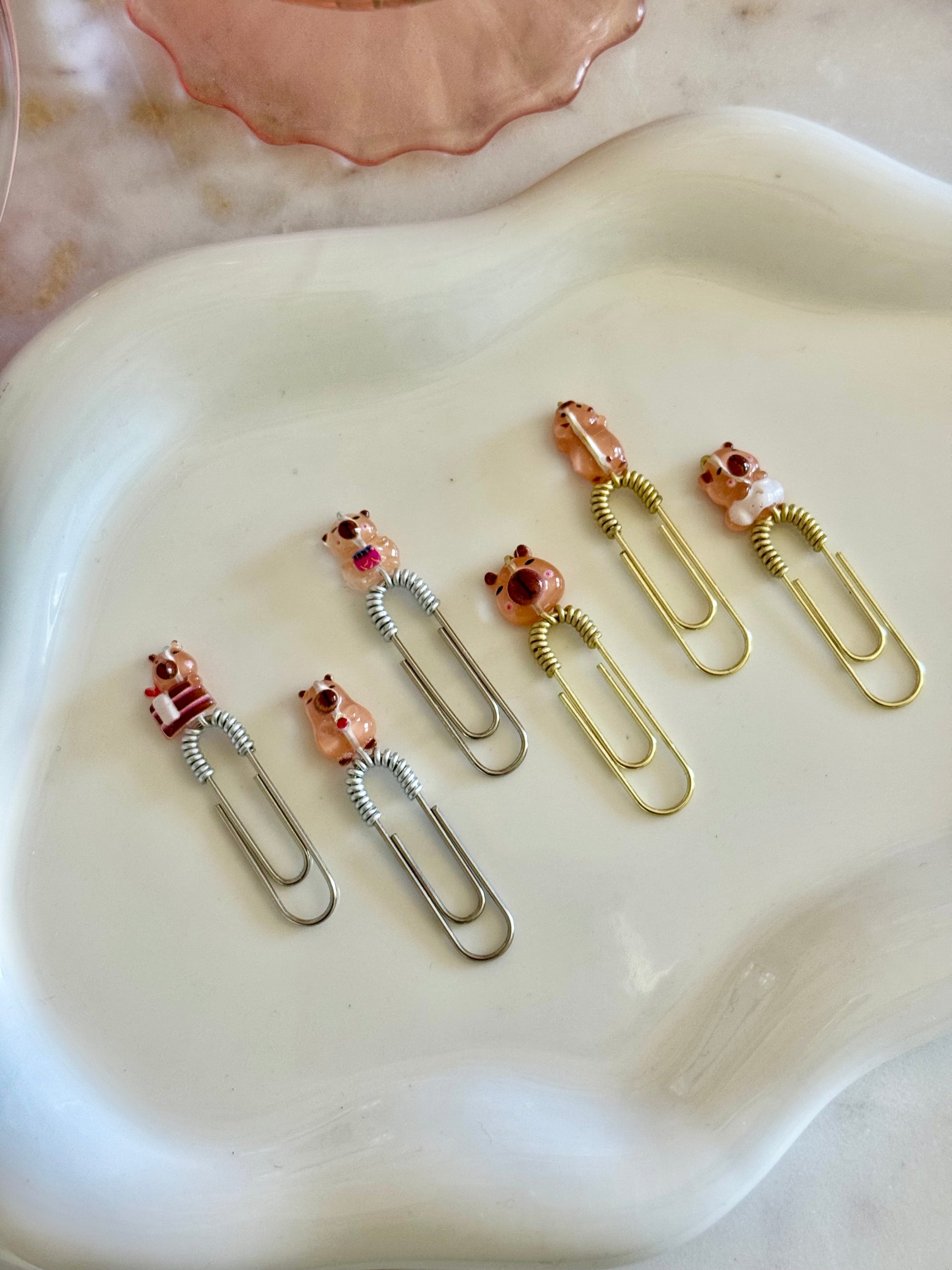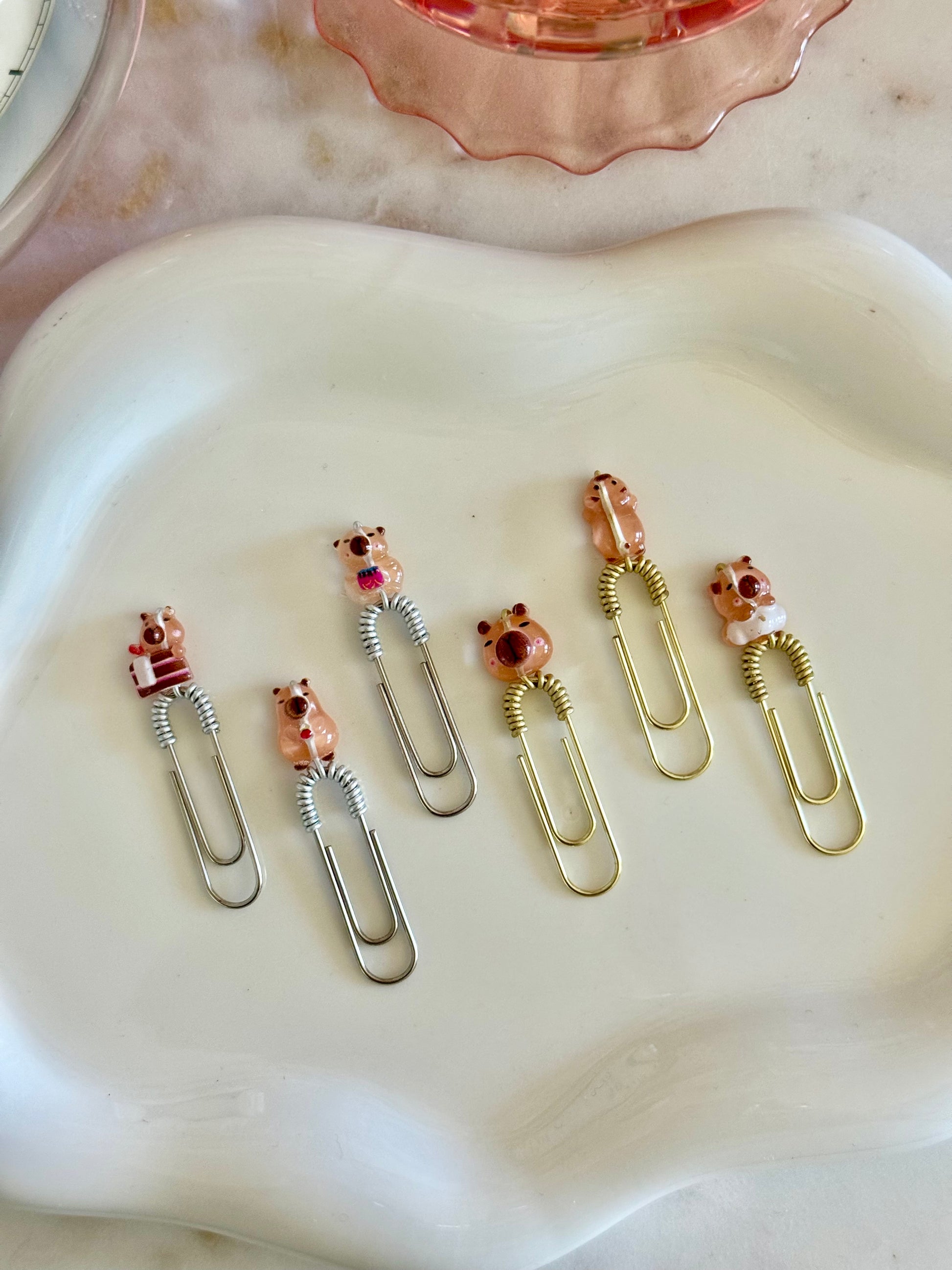 You can choose your preferred mini paperklip color — gold, silver, or black — to match your style. Perfect for planners, journals, or gifting a dose of cuteness to a fellow capybara fan!