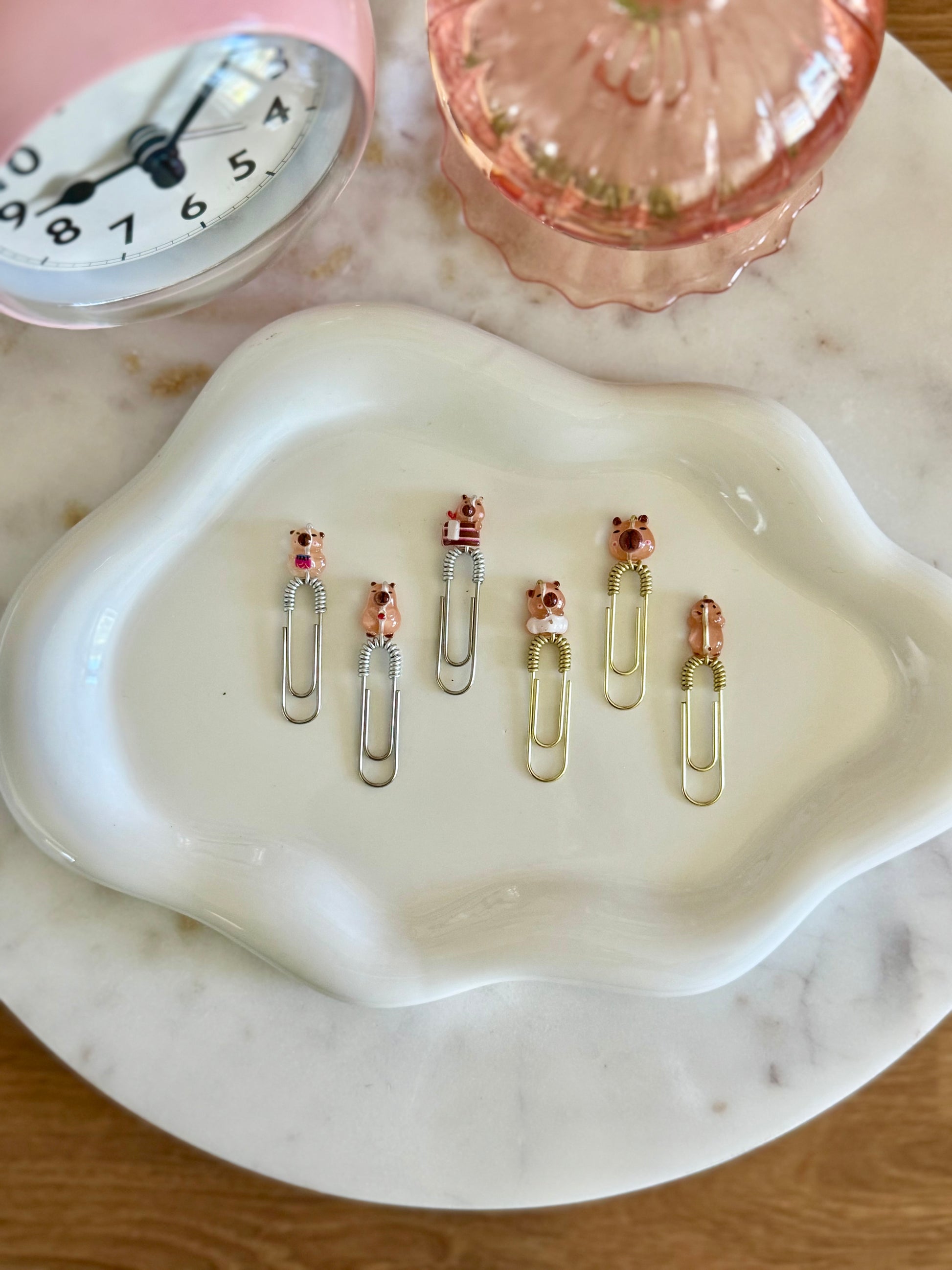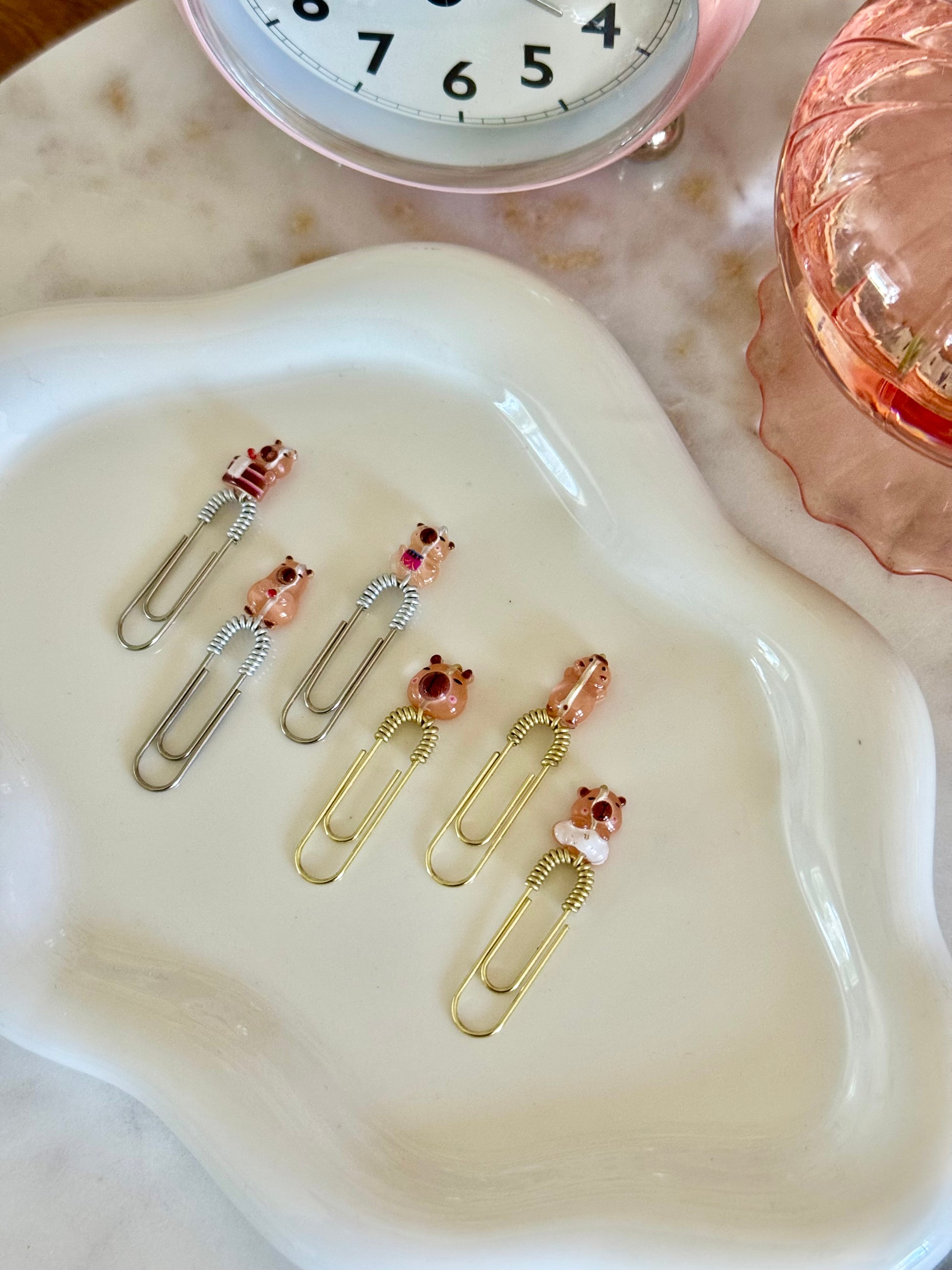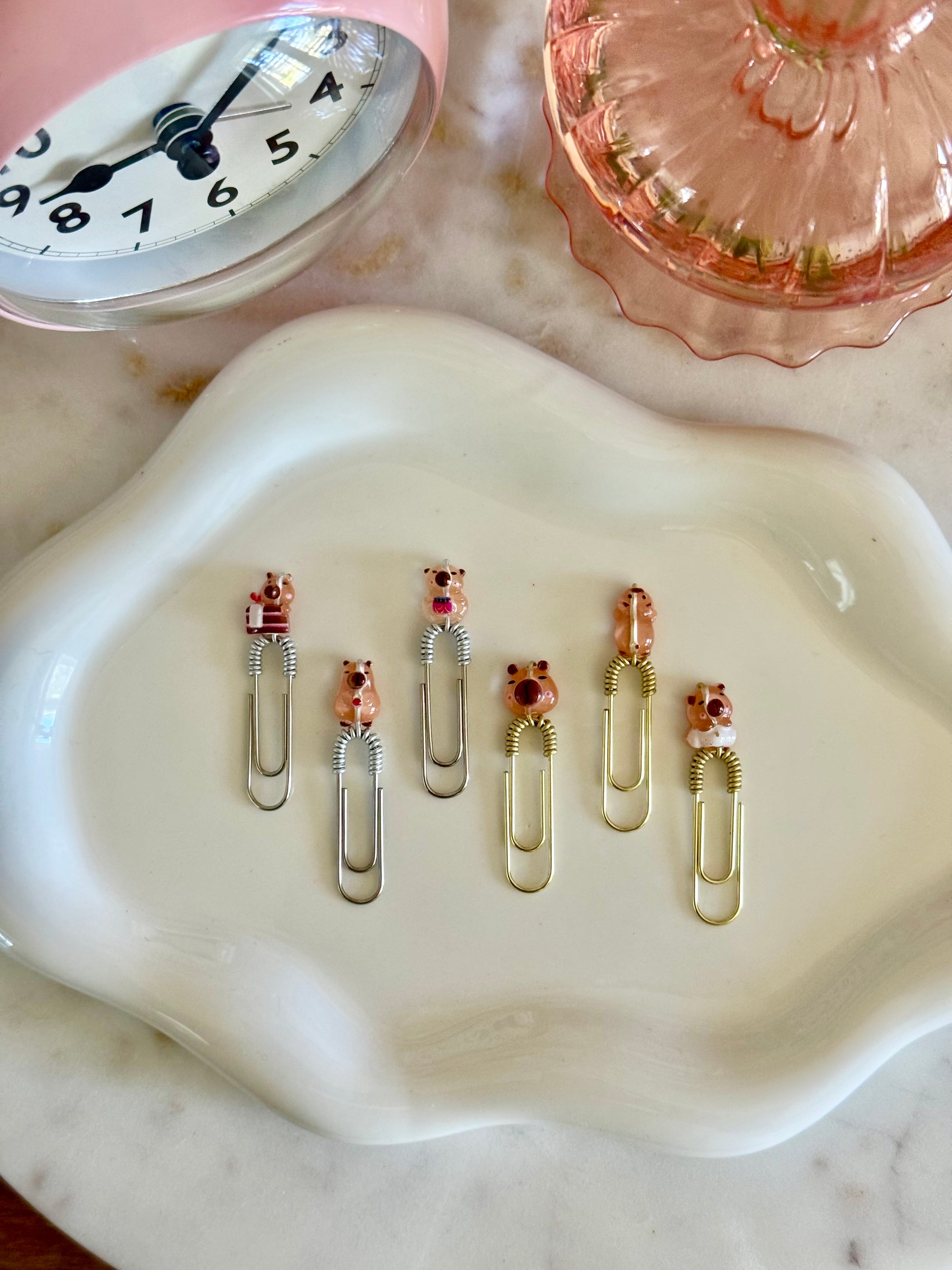 You can choose your preferred mini paperklip color — gold, silver, or black — to match your style. Perfect for planners, journals, or gifting a dose of cuteness to a fellow capybara fan!