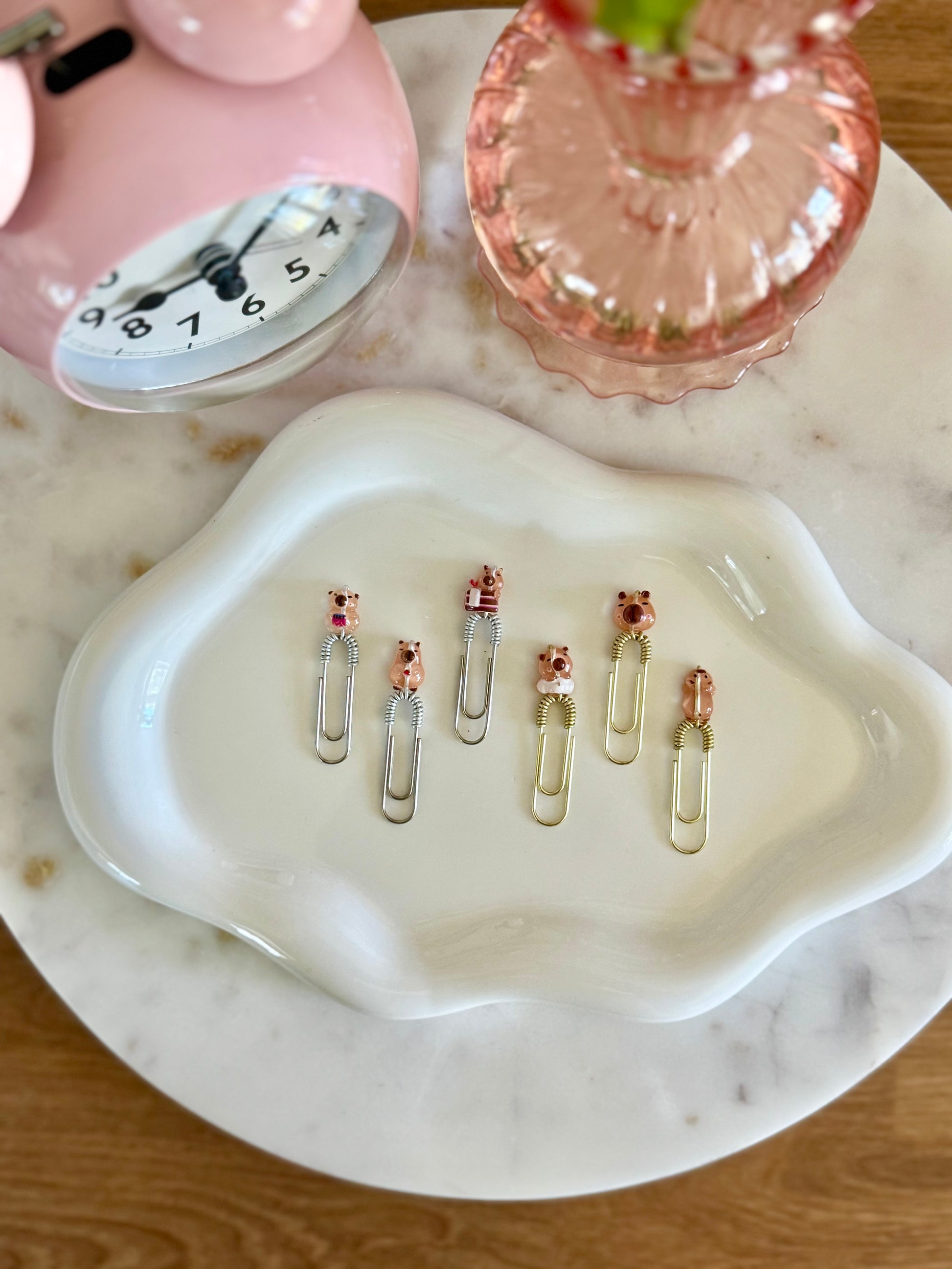 Meet the Tiny Kappy Crew — the most adorable little capybaras ready to bring charm to your pages! 🐾 Each set includes 3 mini paperklips, randomly selected from 6 playful capybara designs, so every order is a fun surprise. Whether they’re lounging, snacking, or just being their chill capy selves, these tiny friends are here to make organizing a little more joyful.