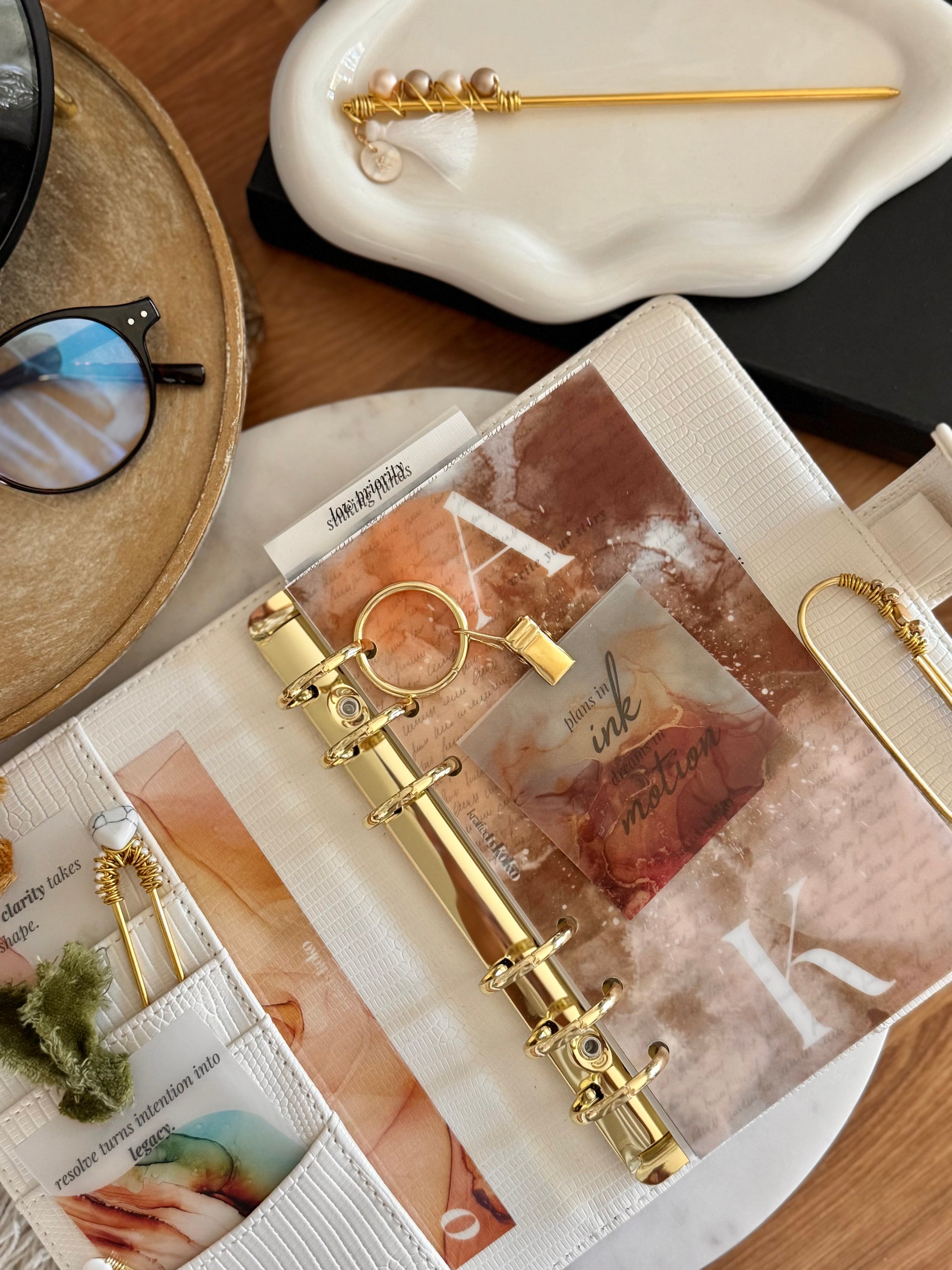 Available in six coordinating colors inspired by the Kindred Kalmstone Collection, each piece is crafted to balance strength with serenity. Its bold design and gentle texture make it the perfect layering piece, adding depth and presence to your planner, binder, or wallet.